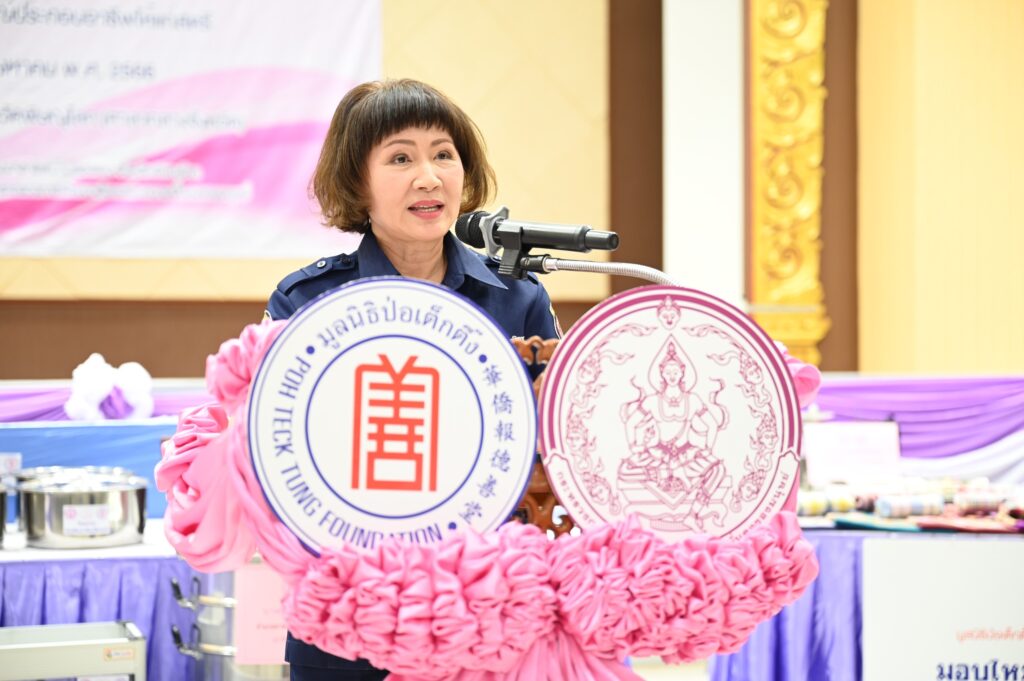 นางศิริกุล โอภาสวงศ์ กรรมการและเลขาธิการ เปิดเผยว่า สำหรับโครงการส่งเสริมอาชีพเพื่อสตรี มูลนิธิป่อเต็กตึ๊ง ร่วมกับ กรมกิจการสตรีและสถาบันครอบครัว กระทรวงการพัฒนาสังคมและความมั่นคงของมนุษย์ โดยมูลนิธิฯ กำหนดมอบวัสดุอุปกรณ์ประกอบอาชีพให้แก่สตรีที่มีรายได้น้อย มีภาระหน้าที่ดูแลคนในครอบครัว เป็นแม่เลี้ยงเดี่ยว หรือด้อยโอกาสทางสังคม เป็นผู้มีความรู้ความสามารถ แต่ขาดแคลนวัสดุอุปกรณ์ประกอบอาชีพ รวม 8 ศูนย์เรียนรู้การพัฒนาสตรีและครอบครัว ได้แก่ จังหวัดนนทบุรี สงขลา ศรีสะเกษ ขอนแก่น ลำพูน ลำปาง เชียงราย และจังหวัดพิษณุโลก ให้ได้มีวัสดุอุปกรณ์ไปประกอบอาชีพเลี้ยงตนเองและครอบครัว เพื่อเป็นการลดปัญหาความเหลื่อมล้ำในสังคม สร้างความสุขสู่ชุมชน สังคม และประเทศชาติอย่างยั่งยืนต่อไป โดยนับตั้งแต่เริ่มดำเนินการลงพื้นที่ในเดือนเมษายนจนถึงในวันนี้ มูลนิธิฯ มอบอุปกรณ์ประกอบอาชีพรวมมอบ 8 แห่ง จำนวน 61 ราย คิดเป็นมูลค่าทั้งสิ้น 980,940 (เก้าแสนแปดหมื่นเก้าร้อยสี่สิบบาทถ้วน)