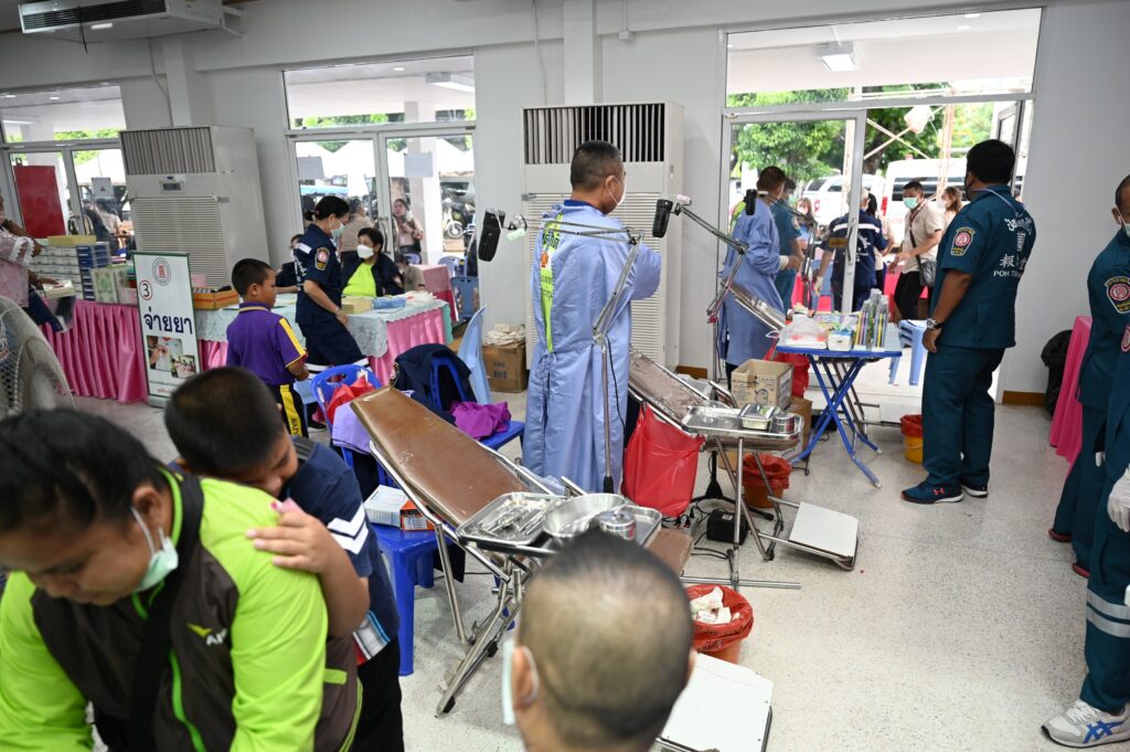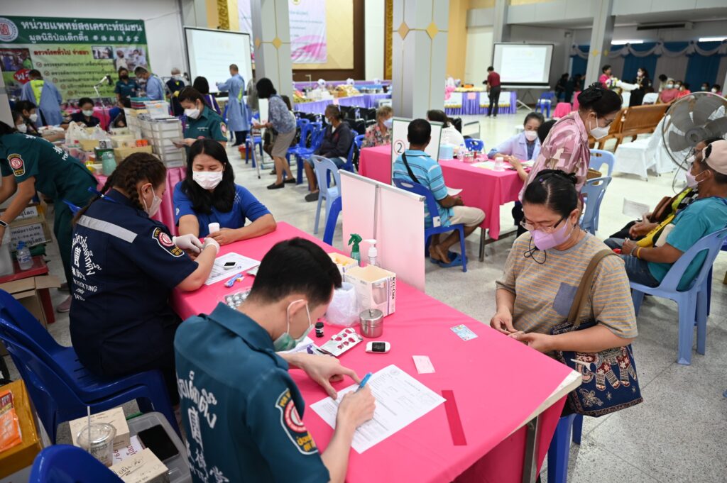 พร้อมกันนี้ นางสาวเนาวรัตน์ วรรณศิริ หัวหน้าแผนกหน่วยแพทย์สงเคราะห์ชุมชน นำทีมหน่วยแพทย์ฯ ลงพื้นที่ให้บริการประชาชนฟรี ประกอบด้วย บริการตรวจรักษาโรคทั่วไป จ่ายยา ตรวจวัดสายตาพร้อมแจกแว่น และบริการตัดผม ฯลฯ โดยมีประชาชนเข้ารับบริการเป็นจำนวนมาก