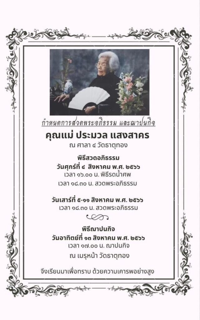 เวลา ๑๗.๐๐ น. ฌาปนกิจ ณ เมรุหน้า วัดธาตุทอง