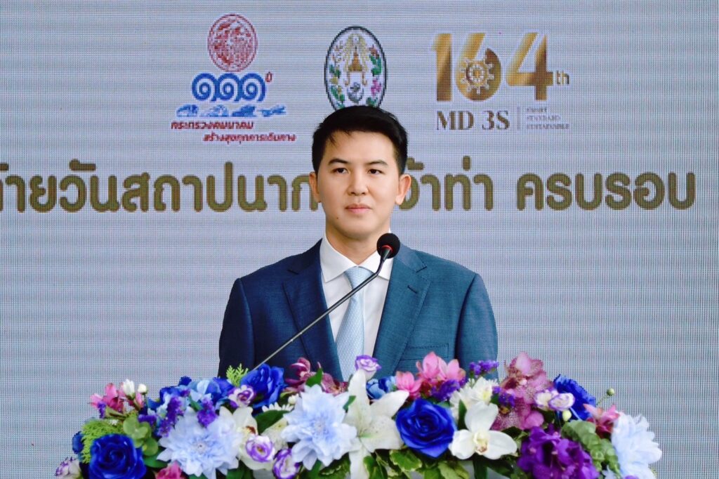 โดยนายอธิรัฐ รัตนเศรษฐ รัฐมนตรีช่วยว่าการกระทรวงคมนาคม รักษาราชการแทนรัฐมนตรีว่าการกระทรวงคมนาคม ในฐานะประธานในพิธี กล่าวว่า กรมเจ้าท่า เป็นหน่วยงานราชการที่ก่อตั้งมายาวนานที่สุดในกระทรวงคมนาคม ที่จนถึงปัจจุบันนี้ มีอายุถึง 164 ปี ภารกิจของกรมเจ้าท่า ครอบคลุมงานหลายด้าน อาทิ การพัฒนาศักยภาพในการขนส่งทางน้ำ การยกระดับมาตรฐานความปลอดภัยของการคมนาคมทางน้ำและพาณิชยนาวี การพัฒนาและบำรุงรักษาโครงสร้างพื้นฐานทางน้ำ และการผลิตบุคลากรด้านพาณิชยนาวีให้มีคุณภาพ รวมทั้งการดูแลรักษาสิ่งแวดล้อมทางน้ำ และชายฝั่งทะเล ด้วยภารกิจดังกล่าว เป็นที่ประจักษ์แก่สายตาประชาชนแล้วว่า กรมเจ้าท่า มุ่งมั่น พัฒนาและยกระดับการบริการที่ดี ตอบสนองความต้องการของประชาชนและประเทศชาติมาอย่างต่อเนื่อง ด้วยภารกิจที่หลากหลาย และยิ่งใหญ่ กลไกสำคัญที่จะทำให้หน่วยงานขับเคลื่อนไปข้างหน้าอย่างราบรื่น เข้มแข็ง ก็คือ ผู้บริหาร ข้าราชการ และเจ้าหน้าที่กรมเจ้าท่าที่ต้องมีความพร้อมในการปฏิบัติหน้าที่ และทุ่มเทกำลังกาย กำลังความสามารถในการผลักดันกระบวนงานต่างๆให้สัมฤทธิ์ผล พร้อมก้าวสู่ปีต่อไปอย่างมั่นคง และจากการมุ่งมั่นปฏิบัติภารกิจที่ผ่านมา กรมเจ้าท่าในยุคปัจจุบันได้ปรับปรุง พัฒนา ให้เกิดการเปลี่ยนแปลงภาพลักษณ์เป็นองค์กรที่ตื่นตัวในการพัฒนาด้านต่างๆ อย่างต่อเนื่อง นับเป็นหน่วยงานที่เป็นตัวอย่างที่ดี ในการนำองค์กรสู่ความสำเร็จในอนาคต ผมในฐานะรัฐมนตรีช่วยว่าการกระทรวงคมนาคม รักษาราชการแทนรัฐมนตรีว่าการกระทรวงคมนาคม ที่กำกับดูแลกรมเจ้าท่า เชื่อมั่นว่าหน่วยงานและบุคลากรที่ได้รับการคัดเลือกเป็นหน่วยงานต้นแบบ และคนต้นแบบจะมีส่วนช่วยสนับสนุนให้กรมเจ้าท่า พัฒนาอย่างก้าวหน้า ก้าวไกลสู่ ” MD 3S : SMART : STANDARD : SUSTAINABLE ” ต่อไป