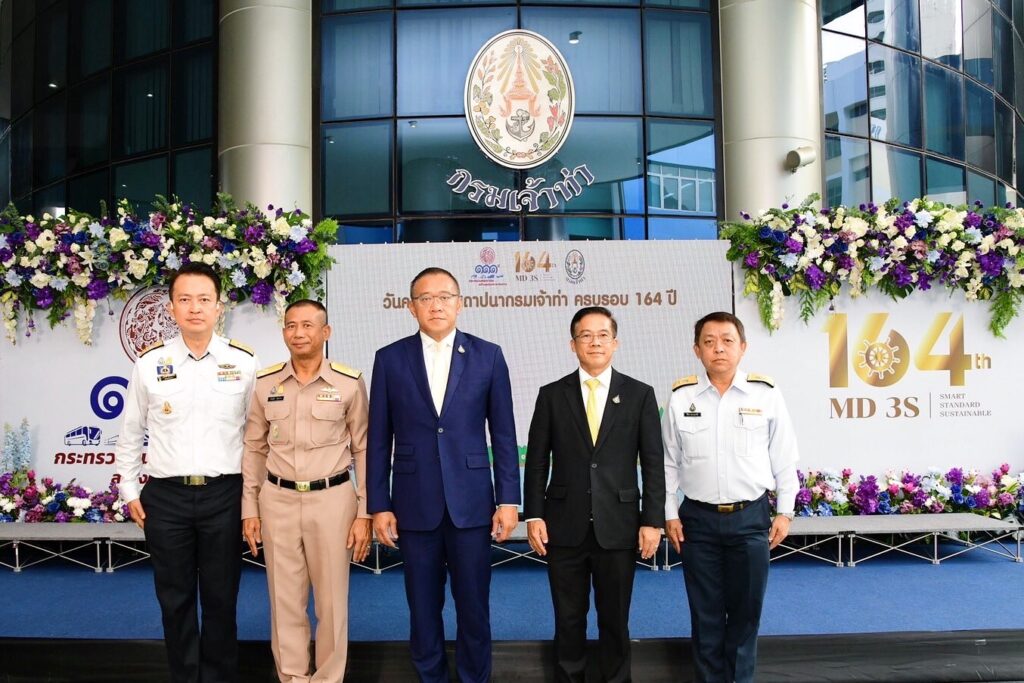 ทางด้านนายกริชเพชร ชัยช่วย ผู้ตรวจราชการกระทรวงคมนาคม รักษาราชการแทนอธิบดีกรมเจ้าท่า กล่าวว่า นับจากอดีตจนถึงปัจจุบัน กรมเจ้าท่า ได้ปรับปรุงและพัฒนางานมาอย่างต่อเนื่อง โดยได้มีการปรับบทบาทการบริหารงานให้เป็นเชิงรุกมากขึ้น พร้อมมุ่งยกระดับการให้บริการที่ดีตอบสนองความต้องการของประชาชน เพื่อยกระดับคุณภาพชีวิตของคนในชาติให้ได้รับความสะดวก ปลอดภัย ทันสมัย อย่างทั่วถึง รวมถึงการพัฒนาศักยภาพบุคลากรของกรมเจ้าท่า ให้มีความรู้ ปรับเปลี่ยนตามสถานการณ์ปัจจุบัน และมีความพร้อมในการให้บริการประชาชนอย่างมีประสิทธิภาพ ในปี พ.ศ.2566-2567 กรมเจ้าท่า ได้พัฒนาปรับปรุงการปฏิบัติภารกิจให้มุ่งสู่ ” MD 3S : SMART : STANDARD : SUSTAINABLE ผ่านการทำงานร่วมกับทุกภาคส่วน เพื่อให้การพัฒนาการคมนาคมขนส่งทางน้ำ ไม่เป็นเพียงการส่งเสริมการเดินทางและการขนส่งสินค้าทางน้ำ แต่ยังช่วยสนับสนุนในมิติด้านสิ่งแวดล้อม การป้องกันภัยแล้งและอุทกภัย การส่งเสริมการท่องเที่ยว การเพิ่มรายได้และช่วยยกระดับคุณภาพชีวิตให้กับประชาชนด้วยการเป็นองค์กรที่พร้อมด้วยความ ทันสมัย : ได้มาตรฐาน : ผสานความยั่งยืนและในโอกาส 164 ปี แห่งการสถาปนากรมเจ้าท่า เพื่อเป็นการสร้างขวัญและกำลังใจให้กับบุคลากรของกรมเจ้าท่า จึงได้มีการมอบโล่ยกย่องเชิดชูเกียรติคุณรางวัลคนต้นแบบ จำนวน 9 รางวัล และหน่วยงานต้นแบบกรมเจ้าท่า จำนวน 3 รางวัล พร้อมมอบทุนส่งเสริมการศึกษาให้แก่บุตรสมาชิกสวัสดิการกรมเจ้าท่า จำนวน 10 ทุน เพื่อเป็นส่วนหนึ่งในการสนับสนุน ให้ข้าราชการ และเจ้าหน้าที่กรมเจ้าท่า มีพลังร่วมกันพัฒนากรมเจ้าท่า สู่ “MD 3S” ให้มีความก้าวหน้า ก้าวไกล อย่างมั่นคงและยั่งยืนสืบไป