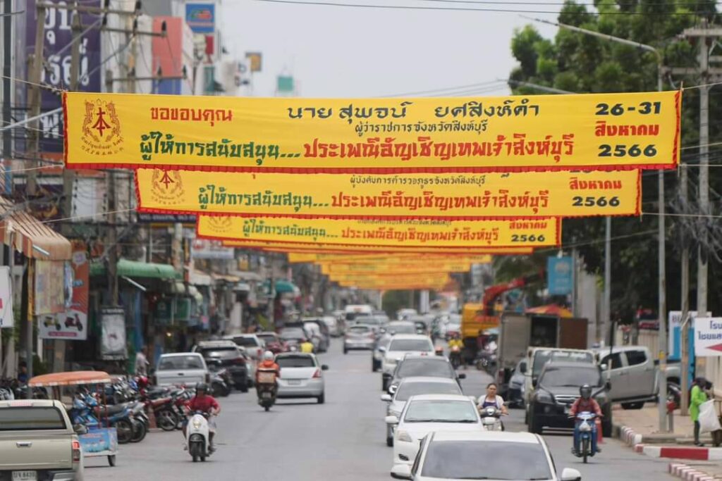 🟥 วันเสาร์ที่ 26 สิงหาคม 2566 มีพิธีอัญเชิญองค์เทพเจ้า ประจำปี 2566 โดยช่วงเช้า มีอัญเชิญเทพเจ้าแห่รอบตลาดสิงห์บุรี และช่วงเย็น ทำการอัญเชิญองค์เทพเจ้าเข้าประทับที่