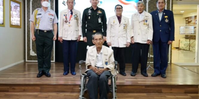 เมื่อวันที่ 4 ส.ค. 2566 ที่องค์การสงเคราะห์ทหารผ่านศึก (อผศ.) พล.อ.สัณทัศน์ นันทิภาคย์หิรัญ ผู้อำนวยการองค์การสงเคราะห์ทหารผ่านศึก (ผอ.อผศ.) เป็นประธาน ประดับเข็มทหารผ่านศึก พร้อมกับมอบหมวกหนีบองค์การฯ และของที่ระลึก ให้แก่ทหารผ่านศึกไทย ซึ่งได้เข้าร่วมรบในห้วงสงครามเกาหลี ระหว่าง พ.ศ. 2493 – 2496 และเป็นผู้แทนเดินทางไปเข้าร่วมพิธีรำลึกวาระครบรอบ 70 ปี ข้อตกลงว่าด้วยการยุติสงครามเกาหลี ณ สาธารณรัฐเกาหลี จำนวน 4 ท่าน ได้แก่ พ.อ. บุญยืน จันทุรัตน์, ร.ต.ต. นอม สุภาผล, พลทหาร ผ่อง บำรุงรักษ์ และ พันจ่าเอก ปรีชา ภมรนิยม