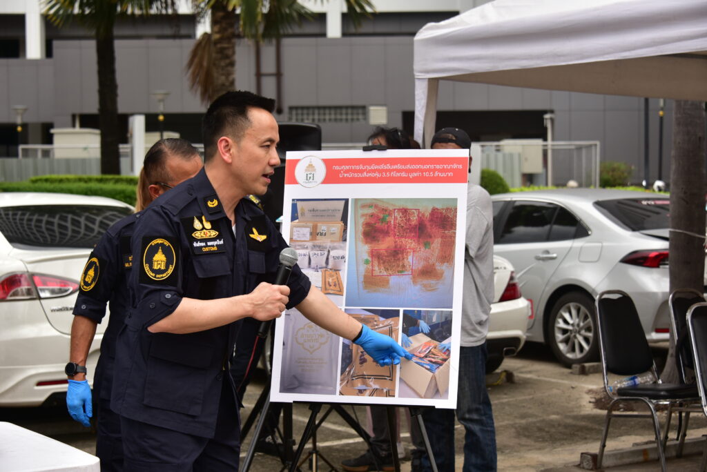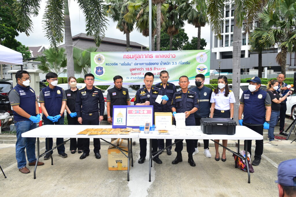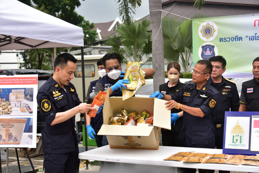 โฆษกกรมศุลกากร กล่าวเพิ่มเติมอีกว่า นอกจากนี้ กรมศุลกากรยังได้ให้ความสำคัญในภารกิจปกป้องสังคม ให้ปราศจากการลักลอบนำเข้าสิ่งผิดกฎหมายและยาเสพติด จึงให้ทุกหน่วยงานในสังกัดกรมศุลกากร เพิ่มความเข้มงวดเป็นพิเศษในการป้องกัน สกัดกั้นยาเสพติดให้โทษ และบูรณาการกับหน่วยงานบังคับใช้กฎหมายอื่นทั้งในและต่างประเทศอย่างต่อเนื่อง จนกระทั่งเมื่อวันที่ 3 สิงหาคม 2566 ณ ศูนย์ไปรษณีย์สุวรรณภูมิ กรมศุลกากรพบกล่องพัสดุด่วนพิเศษระหว่างประเทศ ต้นทางจากเขตบางกะปิ กรุงเทพมหานคร ปลายทางเขตบริหารพิเศษฮ่องกงแห่งสาธารณรัฐประชาชนจีน จำนวน 1 หีบห่อ มีความน่าสงสัยจึงให้เจ้าหน้าที่ภายใต้การกำกับดูแลของนายพงศ์เทพ บัวทรัพย์ รองอธิบดี รักษาการในตำแหน่งที่ปรึกษาด้านการพัฒนาระบบควบคุมทางศุลกากร นายถวัลย์ รอดจิตต์ ผู้อำนวยการกองสืบสวนและปราบปราม และนายจักกฤช อุเทนสุต ผู้อำนวยการสำนักงานศุลกากรตรวจสินค้าท่าอากาศยานสุวรรณภูมิ ร่วมกับชุดปฏิบัติการ AITF (AIRPORT INTERDICTION TASK FORCE) ประกอบด้วย กรมศุลกากร สำนักงานคณะกรรมการป้องกันและปราบปรามยาเสพติด กองบัญชาการตำรวจปราบปรามยาเสพติด และศูนย์รักษาความปลอดภัยแห่งชาติ ร่วมกันวิเคราะห์ความเสี่ยงในการลักลอบส่งของต้องห้ามต้องกำกัดออกนอกราชอาณาจักร และทำการตรวจสอบพัสดุดังกล่าว ซึ่งสำแดงชนิดสินค้าเป็น PILL PATCH,COUGH PILLS,SNACK น้ำหนักรวม 10.790 กิโลกรัม จากการตรวจสอบสินค้า PILL PATCH จำนวน 12 ถุง (แผ่นประคบร้อน) พบร่องรอยการถูกปิดผนึกใหม่ด้วยความร้อน โดยภายในแต่ละถุงบรรจุซองย่อยอีก จำนวน 4 ซอง รวมทั้งสิ้น 48 ซอง มีร่องรอยการปิดผนึกใหม่เช่นกันทุกซอง จึงได้เปิดซองออกตรวจสอบพบยาเสพติดให้โทษประเภท 1 เฮโรอีน (Heroine) ซุกซ่อนอยู่ภายใน น้ำหนักรวมสิ่งห่อหุ้ม 3.5 กิโลกรัม มูลค่ากว่า 10.5 ล้านบาท