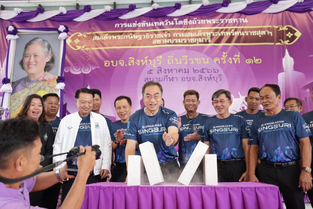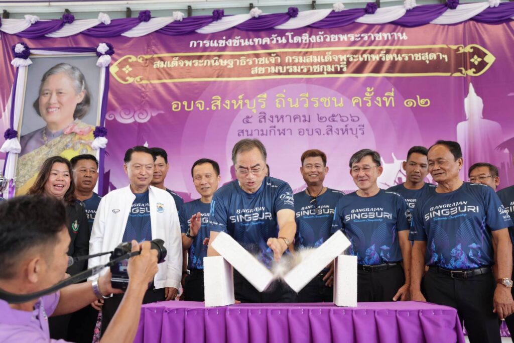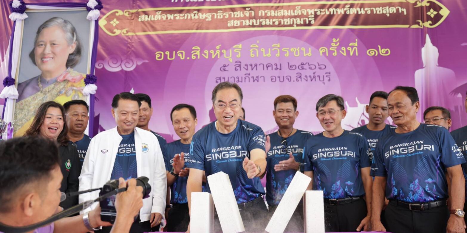 วันเสาร์ที่ ๕ สิงหาคม ๒๕๖๖ เวลา ๐๘.๓๐ น. นายสุพจน์ ยศสิงห์คำ ผู้ว่าราชการจังหวัดสิงห์บุรี เป็นประธานในพิธีเปิดโครงการแข่งขันกีฬาเทควันโดชิงถ้วยพระราชทาน กรมสมเด็จพระเทพรัตนราชสุดาฯ สยามบรมราชกุมารี องค์การบริหารส่วนจังหวัดสิงห์บุรี ถิ่นวีรชน แชมป์เปี้ยนชิพ ครั้งที่ ๑๒ ประจำปี ๒๕๖๖ ณ อาคารเอนกประสงค์ สนามกีฬาองค์การบริหารส่วนจังหวัดสิงห์บุรี โดยมี นายสัมฤทธิ์ กองเงิน รองผู้ว่าราชการจังหวัดสิงห์บุรี นายศุภวัฒน์ เทียนถาวร นายกองค์การบริหารส่วนจังหวัดสิงห์บุรี เป็นผู้อัญเชิญถ้วยพระราชทาน ฯ พร้อมด้วย ผู้อำนวยการสำนักงานการกีฬาแห่งประเทศไทยสิงห์บุรี นายกสมาคมกีฬาแห่งจังหวัดสิงห์บุรี หัวหน้าส่วนราชการ สมาชิกสภาองค์การบริหารส่วนจังหวัดสิงห์บุรี นักกีฬา ผู้ฝึกสอนและเข้าร่วมพิธีเปิดการแข่งขันเทควันโดชิงถ้วยพระราชทาน 2 ประเภท ประกอบด้วย ประเภทท่ารำและประเภทต่อสู้ มีวัตถุประสงค์เพื่อพัฒนาร่างกาย จิตใจ ของนักกีฬา ในการร่วมกัน ไม่ว่าจะอขู่ในระหว่างการแข่งขันและหลังการแข่งขัน รวมทั้งการให้เยาวชนใช้เวลาว่างให้เป็นประโยชน์ ห่างไกลยาเสพติด ซึ่งมีนักกีฬาเข้าร่วมการแข่งขัน จำนวน 700 คน จากชมรมต่างๆทั่วประเทศ