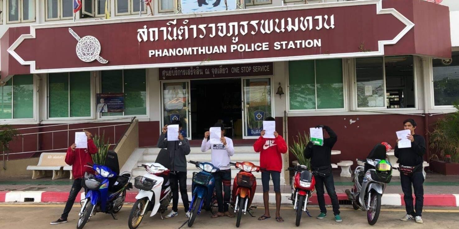ตรวจยึดรถจักรยานยนต์ จำนวน 7 คัน- ไม่มีสำเนาภาพถ่ายคู่มือจดทะเบียนรถ- นำรถที่มีเสียงอึกทึก อื้ออึง มาใช้ในทาง ที่เกิดเหตุ ถนนสายพนมทวน/พระแท่น ม.8 ต.พนมทวน อ.พนมทวน จ.กาญจนบุรี เหตุการณ์ทั่วไปปกติ