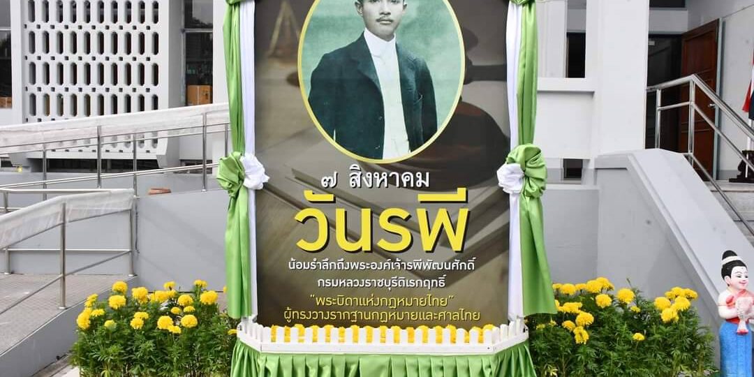 วันจันทร์ที่ 7 สิงหาคม 2566 เวลา 07.15 น. ณ บริเวณหน้าอาคารศาลจังหวัดชลบุรี (ตึกเก่า) นายธวัชชัย ศรีทอง ผู้ว่าราชการจังหวัดชลบุรี ร่วมพิธีถวายพวงมาลา และพิธีถวายราชสดุดีเฉลิมพระเกียรติคุณ เพื่อน้อมรำลึกถึงพระกรุณาธิคุณของพระเจ้าบรมวงศ์เธอพระองค์เจ้ารพีพัฒนศักดิ์ กรมหลวงราชบุรีดิเรกฤทธิ์ พระบิดาแห่งกฎหมายไทย โดยมีนายสุพัฒน์ พงษ์ทัดศิริกุล อธิบดีผู้พิพากษาภาค 2 เป็นประธานในพิธี