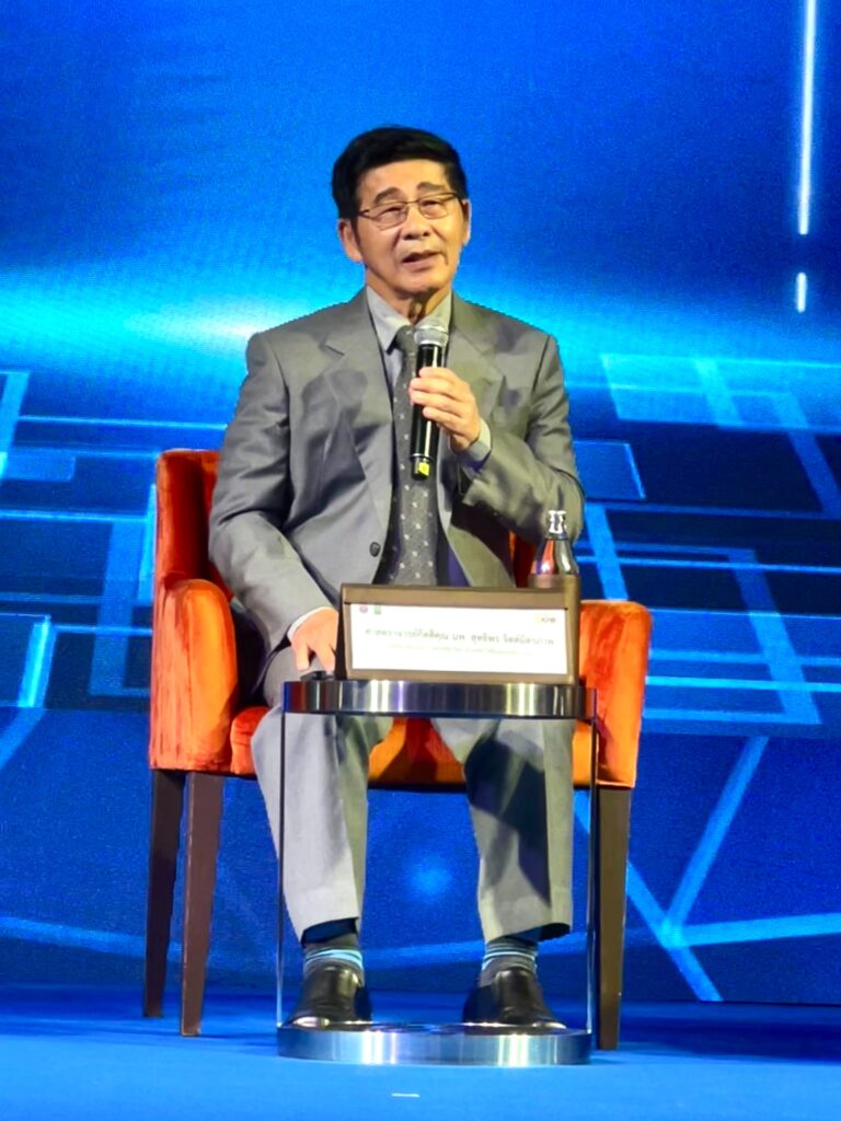 ดร.กิติพงศ์ พร้อมวงศ์ ผู้อำนวยการสภานโยบายการอุดมศึกษา วิทยาศาสตร์ วิจัยและนวัตกรรมแห่งชาติ กล่าวว่า ปีนี้ขีดความสามารถทางการแข่งขันของไทยทั้งในด้านวิทยาศาสตร์และการศึกษาลดลง ในขณะที่เราตั้งเป้าหมายว่าในปี พ.ศ.2570 ประเทศไทยจะลงทุนงบวิจัยให้ได้ 2 เปอร์เซนต์ ซึ่งเท่ากับว่า ภายใน 5 ปี เราจะต้องลงทุนด้านวิจัยเพิ่ม 3 แสนล้านบาทหรือปีละ 6 หมื่นล้านบาทเพื่อที่จะทำให้ประเทศไทยหลุดพ้นจากการเป็นประเทศรายได้ปานกลาง ซึ่งเราจะสามารถทำได้ด้วยการใช้บริษัทที่มีนวัตกรมาขับเคลื่อน ใช้เศรษฐกิจเชิงสร้างสรรค์ที่มีวัฒนธรรมของเรามาใส่นวัตกรรมเพื่อสร้างมูลค่าโดยเฉพาะงานด้านดิจิทัลคอนเทนท์ ซึ่งถ้าหันมาพัฒนาได้จะสร้างมูลค่าได้ถึง 5แสนล้านบาท รวมถึงเรื่อง Net Zero ซึ่งถ้าเราไปต่อไม่ได้ จะขยับต่อไปไม่ได้เลย อย่างไรก็ตาม สิ่งที่เรากำลังทำอย่างเร่งด่วนในขณะนี้ คือ การสร้างบุคลากรและพัฒนาคนให้ตอบสนองด้านการค้าและการลงทุนเติบโตอย่างรวดเร็วโดยการทำแพลตฟอร์มและเปลี่ยนผ่านระบบการศึกษาด้วยวิธีแซนด์บ๊อกซ์ ซึ่งไม่ต้องรอจบการศึกษา 4 ปีก็สามารถเข้าไปทำงานในภาคอุตสาหกรรมตามความต้องการของตลาดได้เลย