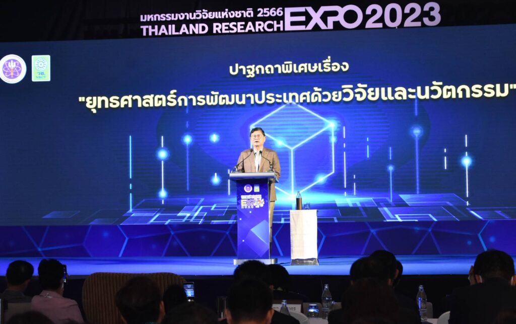 วันที่ 7 ส.ค.2566 : ศ.(พิเศษ) ดร.เอนก เหล่าธรรมทัศน์ รมว.การอุดมศึกษา วิทยาศาสตร์ วิจัยและนวัตกรรม (อว.) เป็นประธานเปิดงาน “มหกรรมงานวิจัยแห่งชาติ 2566 (Thailand Research Expo 2023)” พร้อมด้วย ดร.บุญเกียรติ การะเวกพันธุ์ ผู้ช่วย รมว.กระทรวง (อว.),นายสัมพันธ์ เย็นสำราญ ที่ปรึกษา รมว.กระทรวง (อว.),ดร.ดนุช ตันเทอดทิตย์ เลขานุการ รมว.กระทรวง (อว.),รศ.ดร.พาสิทธิ์ หล่อธีรพงศ์ รองปลัดกระทรวง (อว.) และ นางสาวสุณีย์ เลิศเพียรธรรม หัวหน้าผู้ตรวจราชการกระทรวง (อว.) ทั้งนี้ ศ.(พิเศษ) ดร.เอนกฯ ได้กล่าวปาฐกถาพิเศษ เรื่อง “ยุทธศาสตร์การพัฒนาประเทศด้วยวิจัยและนวัตกรรม” โดยมี ดร.วิภารัตน์ ดีอ่อง ผู้อำนวยการสำนักงานการวิจัยแห่งชาติ (ผอ.วช.) กล่าวต้อนรับ ณ ห้องเวิลด์บอลรูม ชั้น 23 โรงแรมเซ็นทาราแกรนด์ และบางกอกคอนเวนชันเซ็นเตอร์ เซ็นทรัลเวิลด์
