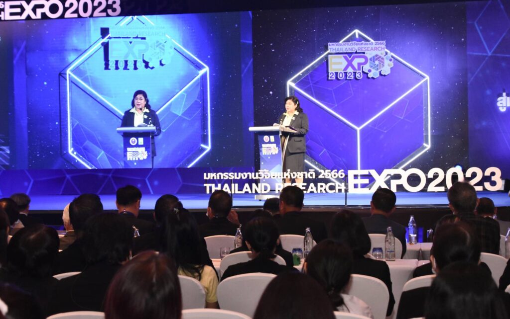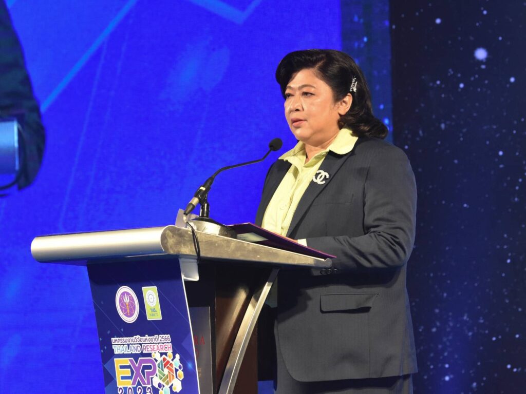 ดร.วิภารัตน์ฯ กล่าวว่า (วช.) ภายใต้กระทรวง (อว.) และหน่วยงานเครือข่าย ร่วมกันจัดงานมหกรรมงารวิจัยมาอย่างต่อเนื่อง โดยปีนี้เป็นปีที่ 18 นับเป็นกำลังความร่วมมือของการสร้างสรรค์งานวิจัยที่อยู่ภายใต้ความร่วมมือที่มีคุณค่าอย่างยิ่ง การจัดงานในปีนี้มีเป้าหมายหลักในการนำความก้าวหน้าของผลงานวิจัย วิทยาการ นวัตกรรม เพื่อเชื่อมโยงไปสู่การใช้ประโยชน์ในการพัฒนาประเทศในมิติด้านต่างๆ ภายใต้แนวคิด ขับเคลื่อนงานวิจัย สู่เศรษฐกิจยุคใหม่ สร้างไทยยั่งยืน การจัดงานครั้งนี้ได้รับความร่วมมืออย่างดียิ่งจากหน่วยงานเครือข่ายวิจัยทั่วประเทศในการร่วมเป็นเจ้าภาพในการจัดงาน ด้วยความตั้งใจที่จะส่งต่องานวิจัย นวัตกรรม ที่เกิดขึ้นจากความสามารถของนักวิจัยไทยไปสู่การใช้ประโยชน์ในการพัฒนาประเทศต่อไป