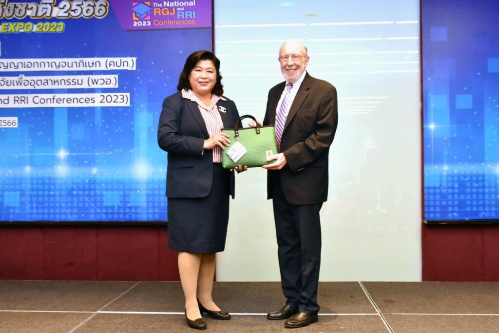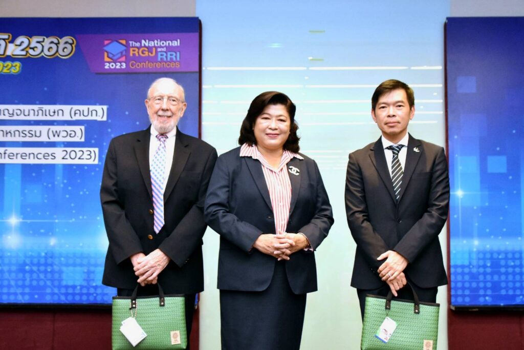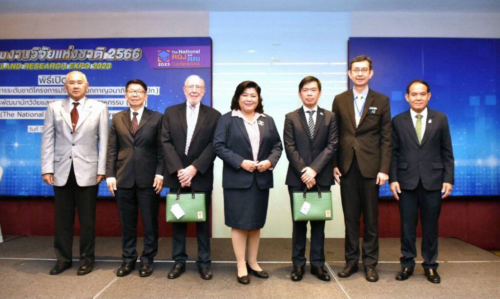 เมื่อวันที่ 7 สิงหาคม 2566 สำนักงานการวิจัยแห่งชาติ (วช.) กระทรวงการอุดมศึกษา วิทยาศาสตร์ วิจัยและนวัตกรรม จัดประชุมวิชาการระดับชาติ ภายใต้โครงการปริญญาเอกกาญจนาภิเษก (คปก.)และโครงการพัฒนางานวิจัยและนักวิจัยเพื่ออุตสาหกรรม (พวอ.) ประจำปี 2566 (The National RGJ and RRI Conferences 2023) ในงาน “มหกรรมงานวิจัยแห่งชาติ 2566 (Thailand Research Expo 2023)” ณ ห้องโลตัส 5-6 ชั้น 22 โรงแรมเซ็นทาราแกรนด์ และบางกอกคอนเวนชันเซ็นเตอร์ เซ็นทรัลเวิลด์ กรุงเทพมหานคร โดย ดร.วิภารัตน์ ดีอ่อง ผู้อำนวยการสำนักงานการวิจัยแห่งชาติ (ผอ.วช.) เป็นประธานเปิดประชุมวิชาการระดับชาติ รองศาสตราจารย์ ดร.คมกฤต เล็กสกุล ผู้อำนวยการกลุ่มภารกิจการพัฒนา (ววน.) ด้านกำลังคนและสถาบันความรู้ สำนักงานคณะกรรมการส่งเสริมวิทยาศาสตร์ วิจัยและนวัตกรรม (สกสว.) บรรยายพิเศษ “ทิศทางการพัฒนานักวิจัยรุ่นเยาว์” Professor Emeritus Geoffrey A. Cordell Natural Products, Inc. and University of Florida บรรยายพิเศษ เรื่อง “C.A.R.E. in Research” พร้อมได้รับความสนใจจากนักวิจัยเข้าร่วมประชุมมากมาย
