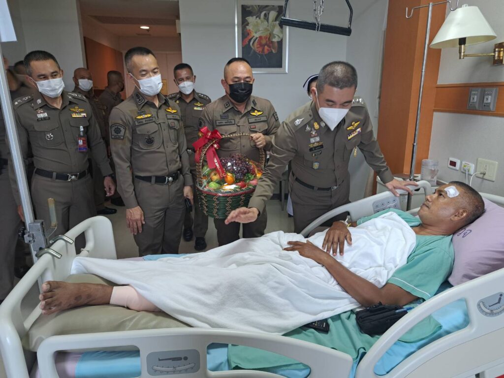 เมื่อวันพุธที่ 9 ส.ค.2566 เวลา 13.30 น. : พล.ต.ท.ธิติ แสงสว่าง ผบช.น. พร้อมด้วย พล.ต.ต.โสภณ สารพัฒน์ รอง ผบช.น.,พ.ต.อ.สิทธิชัย ศรีโสภาเจริญรัตน์ รอง ผบก.น.4,พ.ต.อ.วิชัย ณรงค์ รอง ผบก.น.4,พ.ต.อ.ธนาพันธ์ ผดุงการ ผกก.สน.ลาดพร้าว และเจ้าหน้าที่ที่เกี่ยวข้อง ได้เข้าเยี่ยม มอบเงินและสิ่งของช่วยเหลือแก่ ด.ต.ธงชัย พันธ์จิ๋ว และ ด.ต.ภัสศักย์ วัฒนปัญญาพัชธ์ ผบ.หมู่ ป. สน.ลาดพร้าว ที่ได้รับอุบัติเหตุจากการปฏิบัติหน้าที่ เพื่อเป็นของขวัญและกำลังใจ ณ รพ.พยาบาลตำรวจ ตึกใหม่ ชั้น 11