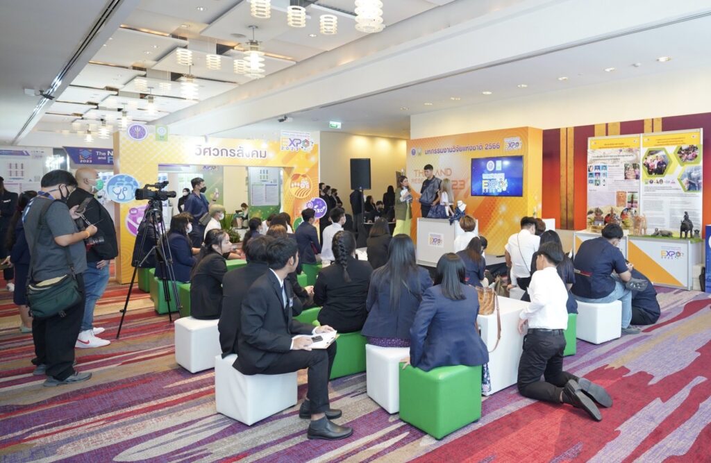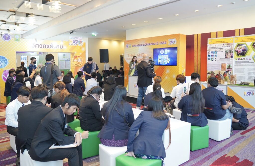 สำนักงานการวิจัยแห่งชาติ (วช.) กระทรวงการอุดมศึกษา วิทยาศาสตร์ วิจัยและนวัตกรรม (อว.) เปิดโอกาสให้นักศึกษาวิศวกรสังคม จากมหาวิทยาลัยราชภัฏจันทรเกษม มหาวิทยาลัยราชภัฏสวนสุนันทา และมหาวิทยาลัยราชภัฏวไลยอลงกรณ์ โชว์ผลงานบนเวที Mini Stage ในงานมหกรรมงานวิจัยแห่งชาติ ปี 2566 เพื่อส่งเสริมและพัฒนาให้นักศึกษาวิศวกรสังคมให้มีทักษะ 4 ประการ คือ เป็น นักคิด นักสื่อสาร นักประสานงาน และนักสร้างนวัตกรรม ด้วยการนำองค์ความรู้จากการวิจัยและนวัตกรรมเป็นเครื่องมือในการดำเนินการ ณ เวที Mini Stage ระหว่างห้อง Lotus 10-11 ชั้น 22 โรงแรมเซ็นทาราแกรนด์และบางกอกคอนเวนชันเซ็นเตอร์ เซ็นทรัลเวิลด์ กรุงเทพฯ
