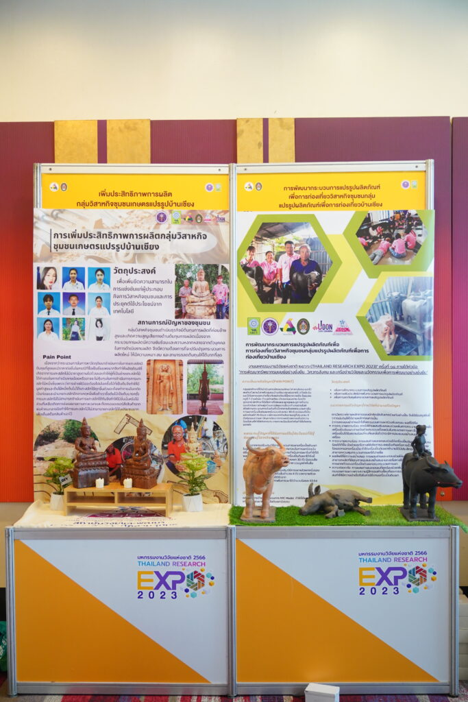 มรภ.สวนสุนันทา ได้นำเสนอผลงานเรื่อง “เพิ่มประสิทธิภาพการผลิตกลุ่มวิสาหกิจชุมชนเกษตรแปรรูปบ้านเชียง” ผลงานเรื่อง “การพัฒนากระบวนการแปรรูปผลิตภัณฑ์เพื่อการท่องเที่ยววิสาหกิจชุมชนกลุ่ม แปรรูปผลิตภัณฑ์เพื่อการท่องเที่ยวบ้านเชียง” ผลงาน “ยกระดับผลิตภัณฑ์ชุมชนสู่ความเป็นมืออาชีพวิสาหกิจชุมชน