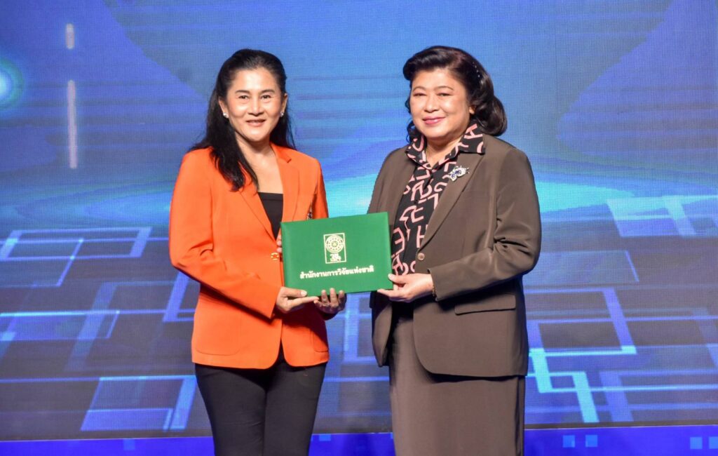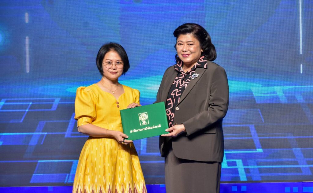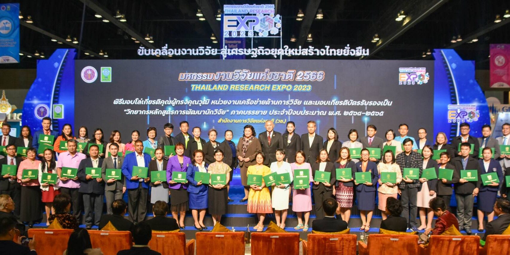 วันที่ 10 สิงหาคม 2566 ณ เวที Highlight Stage โรงแรมเซ็นทาราแกรนด์และบางกอกคอนเวนชันเซ็นเตอร์ เซ็นทรัลเวิลด์ กรุงเทพฯ : สำนักงานการวิจัยแห่งชาติ (วช.) กระทรวงการอุดมศึกษา วิทยาศาสตร์ วิจัยและนวัตกรรม (อว.) จัดพิธีมอบโล่เกียรติคุณผู้ทรงคุณวุฒิ หน่วยงานเครือข่ายด้านการวิจัย (ผู้จัด) และมอบเกียรติบัตรรับรองเป็น “วิทยากรหลักสูตรการ พัฒนานักวิจัย” ภาคบรรยาย โดยมี ดร.วิภารัตน์ ดีอ่อง ผู้อำนวยการสำนักงานการวิจัยแห่งชาติ (ผอ.วช.) เป็นประธาน พร้อมด้วย นายสมปรารถนา สุขทวี รองผู้อำนวยการสำนักงานการวิจัยแห่งชาติ (รอง ผอ.วช.),คณะผู้บริหาร (วช.),ผู้ทรงคุณวุฒิ (วช.),ผู้แทนหน่วยงานเครือข่ายด้านการวิจัย และวิทยากร (แม่ไก่) เข้าร่วมพิธีฯ
