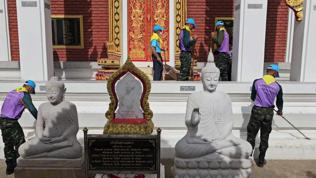 ซึ่งกำลังพลจิตอาสาพระราชทาน ผู้นำชุมชน ตลอดจน จิตอาสาภาคประชาชนในพื้นที่ตำบลเขาสามยอด ได้ร่วมกัน ปลูกต้นไม้ ปล่อยพันธุ์ปลา พัฒนาแหล่งน้ำ ตามโครงการ “รวมใจภักดิ์ รักพระพันปี” และ เก็บกวาดทำความสะอาดบริเวณพื้นที่รอบพระอุโบสถ์ของวัด ล้างห้องน้ำ ห้องสุขา และพื้นที่โดยรอบ เพื่อสร้าง สัปปายะสู่วัด ด้วยวิถี 5 ส. “วัดสวยด้วยความสุข” เพื่อเป็นแบบอย่างของสังคม แสดงออกถึงความรู้รักสามัคคี และจงรักภักดี ด้วยการทำความดีเพื่อสาธารณะประโยชน์ร่วมกัน ถวายเป็นพระราชกุศล และ แด่สมเด็จพระนางเจ้าสิริกิติ์ พระบรมราชินีนาถ พระบรมราชชนนีพันปีหลวง เนื่องในโอกาส เฉลิมพระชนมพรรษา12 สิงหาคม 2566 อย่างพร้อมเพรียงกัน