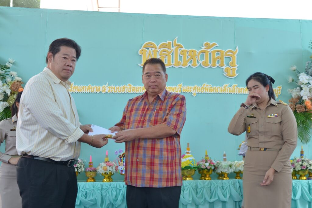 เมื่อวันที่ ๑๐ สิงหาคม ๒๕๖๖ นายจําเริญ สละชีพ นายกเทศมนตรีเมืองลพบุรี เป็นประธานพิธีไหว้ครูและมอบทุนเพื่อพัฒนาการศึกษา ประจำปีการศึกษา ๒๕๖๖ ของ โรงเรียนเทศบาล ๕ ระบบสาธิตเทศบาลเมืองลพบุรี และ ศูนย์พัฒนาเด็กเล็ก เทศบาลเมืองลพบุรี ซึ่งมี นายสันธนะ บัวชาติ รองนายกเทศมนตรีเมืองลพบุรี นายอนุสรณ์ อัศวสงคราม รองนายกเทศมนตรีเมืองลพบุรี นายสุรโชติ โชคชัย ประธานสภาเทศบาลเมืองลพบุรี คณะผู้อำนวยการสถานศึกษาโรงเรียนในสังกัดเทศบาลเมืองลพบุรี ร่วมพิธี โดยมี น.ส.สุกัญญา วงษ์ประภา รักษาราชการแทนผู้อำนวยการสถานศึกษา โรงเรียนเทศบาล ๕ ระบบสาธิตเทศบาลเมืองลพบุรี และ หัวหน้าศูนย์พัฒนาเด็กเล็ก เทศบาลเมืองลพบุรี คณะครู ผู้ปกครอง ให้การต้อนรับ