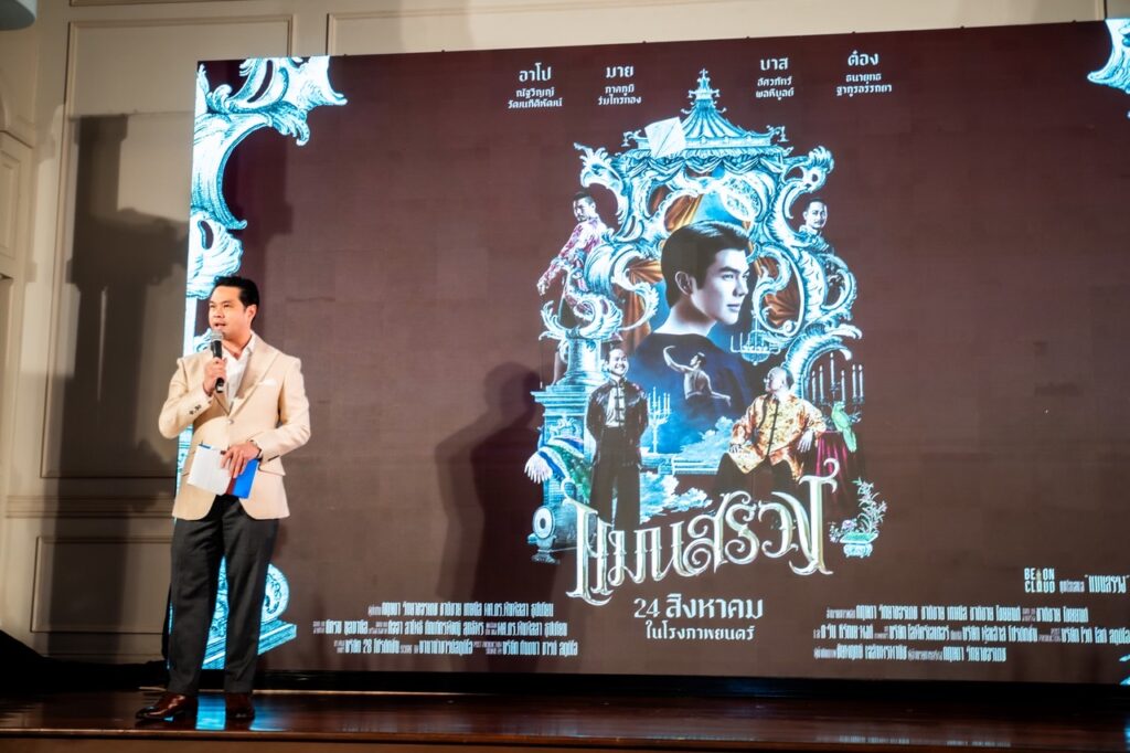 เมื่อค่ำวันอังคารที่ 8 สิงหาคมที่ผ่านมา ณ วิลล่า เดอ บัว บริษัท บี ออน คลาวด์ ได้จัดงานแถลงข่าวสุดยิ่งใหญ่เปิดตัวภาพยนตร์ “แมนสรวง” อย่างเป็นทางการ นำทีมโดย 3 ผู้กำกับยอดฝีมือ ปอนด์ กฤษดา, ชาติชาย เกษนัส และ ผศ.ดร.พันพัสสา ธูปเธียน พร้อมทีมนักแสดงแห่งยุค อย่าง มาย-ภาคภูมิ ร่มไทรทอง, อาโป-ณัฐวิญญ์ วัฒนกิติพัฒน์ ร่วมด้วย บาส-อัศวภัทร์ ผลพิบูลย์, ต๋อง-ธนายุทธ ฐากูรอรรถยา, น็อต ณัฐสิทธิ์ ปัญญางาม, พง พงศกร พลสันติกุล และ อรอนงค์ ปัญญาวงค์