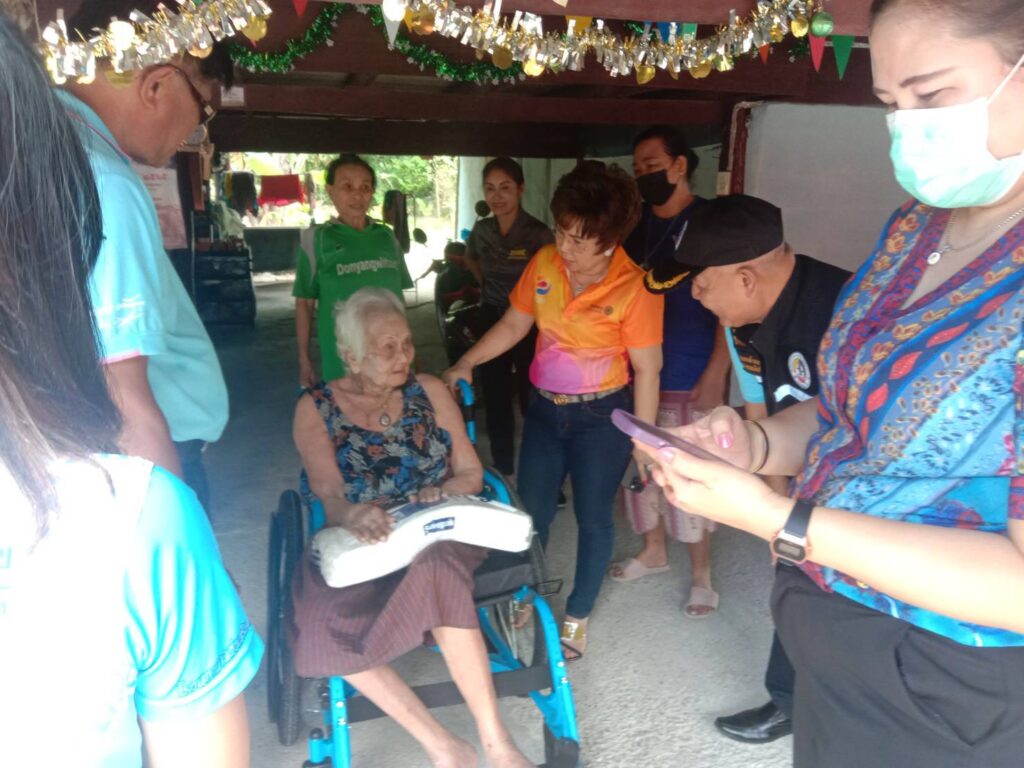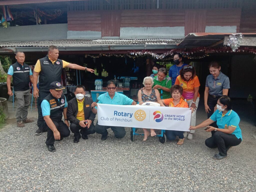 ร่วมลงพื้นที่เยี่ยมเยียน และให้กำลังใจให้กับ นางวัน กลั่นเกษร อายุ 89 ปี บ้านเลขที่ 34 ม.3 ต.ดอนยาง อ.เมือง จ.เพชรบุรี ซึ่งเป็นผู้ป่วยติดเตียง พร้อมมอบถุงยังชีพจาก “มูลนิธิพระราหู” ข้าวสาร อาหารแห้ง น้ำดื่ม พร้อมด้วย แผ่นซึมซับรองสำหรับผู้ป่วยและรถวีลแชร์จากสโมสรฯ เพื่ออำนวยความสะดวกในการใช้ชีวิตประจำวันของผู้ป่วยและผู้ดูแลต่อไป