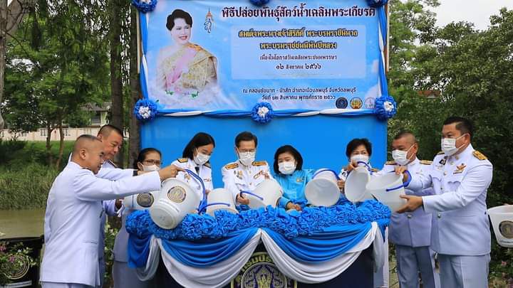จากนั้นในเวลา 09.00 น. ผู้ว่าราชการจังหวัดลพบุรี ได้นำข้าราชการ และพสกนิกรทุกหมู่เหล่า ร่วมทำพิธีปล่อยพันธุ์สัตว์น้ำ จำนวน 199,999 ตัว ณ ท่าน้ำ คลองชัยนาท – ป่าสัก บริเวณข้าวโรงเรียนกําจรวิทย์ จังหวัดลพบุรี เพื่อถวายเป็นพระราชกุศลฯ อีกด้วย