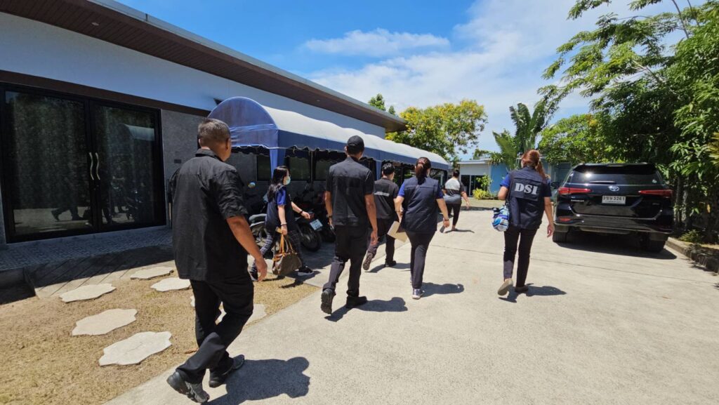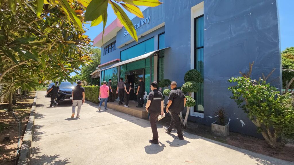 ต่อมากรมสอบสวนคดีพิเศษได้สืบสวนขยายผลจนกระทั่งทราบสถานที่ที่อาจใช้เป็นที่เก็บสินค้าระหว่างรอจำหน่าย เมื่อวันที่ 3 สิงหาคม พ.ศ. 2566 จึงได้นำหมายค้นของศาลทรัพย์สินทางปัญญาและการค้าระหว่างประเทศกลาง เข้าทำการตรวจค้นสถานที่ลักลอบเก็บและจำหน่ายสินค้าที่ละเมิดเครื่องหมายการค้าดังกล่าว รวมจำนวน 6 จุด ในหมู่บ้าน 2 แห่งที่บริเวณหมู่ 2 ตำบลศีรษะจรเข้น้อย อำเภอบางเสาธง จังหวัดสมุทรปราการ โดยมีตัวแทนของผู้เสียหายบางส่วน เช่น ชาแนล (Chanel) หลุยส์ วิตตอง (Louis Vuitton) และ กุชชี่ (Gucci) เป็นต้น เข้าร่วมตรวจสอบและนำชี้สินค้าที่ละเมิดเครื่องหมายการค้า และมีเจ้าหน้าที่ของหน่วยสืบสวนเพื่อความมั่นคงแห่งมาตุภูมิ (Homeland Security Investigation : HSI) ประเทศสหรัฐอเมริกา เข้าร่วมสังเกตการณ์การตรวจค้นด้วย