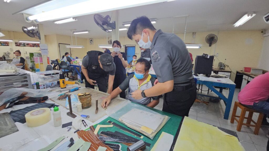 ในเรื่องนี้ กองคดีทรัพย์สินทางปัญญาได้รับแจ้งข้อมูลจาก บริษัท เฮอร์เมส อินเตอร์เนชั่นแนล จำกัด ว่ามีบุคคลมีพฤติการณ์ในการกระทำความผิดโดยเป็นผู้ทำปลอมเครื่องหมายการค้า มีลักษณะเป็นผู้ผลิต จำหน่าย เสนอจำหน่าย และมีไว้เพื่อจำหน่ายสินค้าประเภทกระเป๋าที่มีเครื่องหมายการค้าละเมิดเครื่องหมายการค้า ในลักษณะที่เป็นโรงงานผลิตเครื่องหนังเกรดพรีเมียม เป็นสินค้าที่มีราคาสูงคือราคาชิ้นละตั้งแต่ 50,000 บาทขึ้นไป เพื่อจำหน่ายให้กับลูกค้าโดยเฉพาะชาวต่างชาติซึ่งเป็นนักท่องเที่ยว กองคดีทรัพย์สินทางปัญญาจึงได้ลงพื้นที่สืบสวนพบว่า บริษัท เจเค โปรดักส์ อินเตอร์เนชั่นแนล จำกัด หรือ JK PRODUCTS INTERNATIONAL COMPANY LIMITED ซึ่งตั้งอยู่เลขที่ 351 หมู่ 3 ตำบลหนองขาม อำเภอศรีราชา จังหวัดชลบุรี เป็นแหล่งผลิต และจำหน่ายสินค้าละเมิดเครื่องหมายการค้าจริง เมื่อวันที่ 13 กรกฎาคม พ.ศ. 2566 จึงได้ทำการตรวจค้นสถานที่ดังกล่าวตามหมายค้น ผลการตรวจค้นพบสินค้าที่ละเมิดเครื่องหมายการค้า HERMES (แอร์เมส) Louis Vuitton (หลุยส์ วีตตอง) และยี่ห้ออื่นๆ พร้อมด้วยวัสดุอุปกรณ์และเครื่องมือที่ใช้ในการผลิตสินค้าที่ละเมิดเครื่องหมายการค้าจำนวนมาก และอธิบดีกรมสอบสวนคดีพิเศษได้มีคำสั่งอนุมัติให้ทำการสอบสวนเป็นคดีพิเศษ ที่ 64/2566