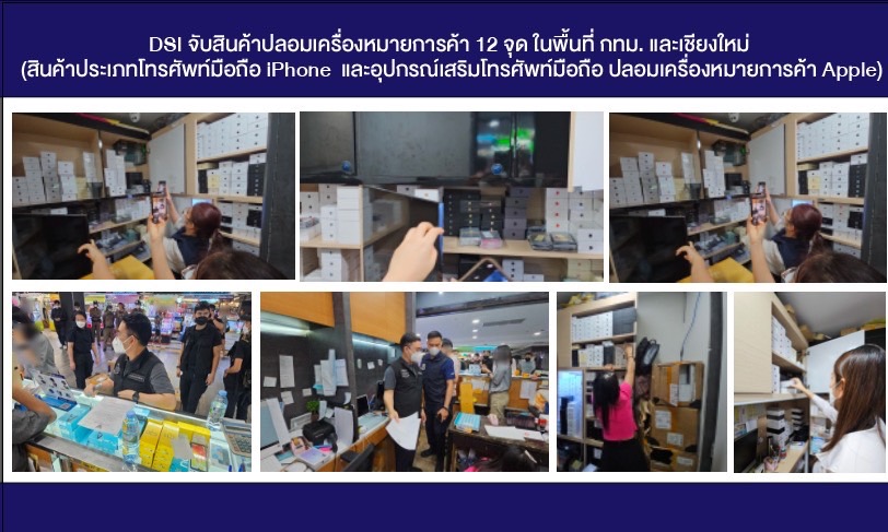 กองคดีทรัพย์สินทางปัญญาได้รับแจ้งข้อมูลจากแหล่งข่าว ว่ามีกลุ่มบุคคลชาวไทยร่วมกับชาวจีน ได้มีการเสนอจำหน่ายและมีไว้เพื่อจำหน่ายซึ่งสินค้าประเภทโทรศัพท์มือถือและอุปกรณ์เสริมโทรศัพท์มือถือที่มีลักษณะปลอมเครื่องหมายการค้า Apple โดยมีลักษณะเป็นเครือข่ายรายใหญ่มีที่ตั้งอยู่ในกรุงเทพมหานครและจังหวัดเชียงใหม่ ต่อมาได้ทำการสืบสวนพบว่ากลุ่มบุคคลดังกล่าวได้ใช้คอนโดมิเนียม ย่านเขตบางพลัด กรุงเทพมหานคร และร้านจำหน่ายโทรศัพท์มือถือในพื้นที่จังหวัดเชียงใหม่ เป็นสถานที่จำหน่ายและเก็บสินค้าละเมิดเครื่องหมายการค้า จึงได้ร้องขอต่อศาลทรัพย์สินทางปัญญาและการค้าระหว่างประเทศกลางเพื่อออกหมายค้นเข้าตรวจค้นพื้นที่กรุงเทพมหานคร จำนวน 10 จุด และจังหวัดเชียงใหม่ จำนวน 2 จุด เป็นอาคารพาณิชย์ และห้างร้านซึ่งเป็นสถานที่จำหน่ายและเก็บสินค้าประเภทโทรศัพท์มือถือ iPhone และอุปกรณ์เสริมโทรศัพท์มือถือปลอมเครื่องหมายการค้า Apple