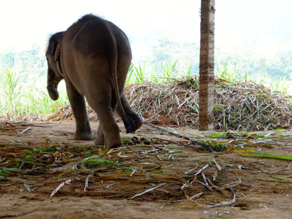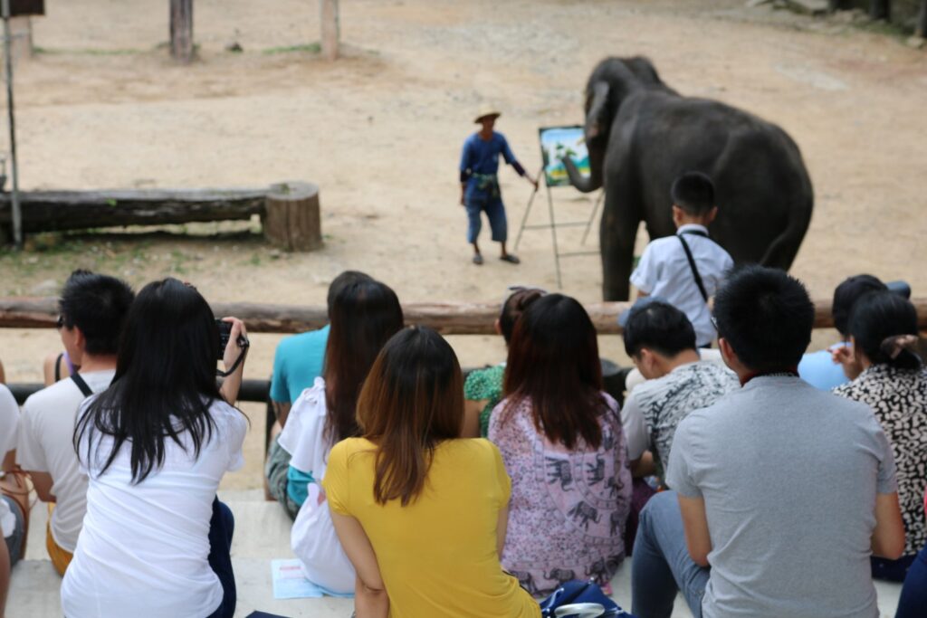 ข้อมูลจากองค์กรพิทักษ์สัตว์แห่งโลกระบุ ปัจจุบันในประเทศไทย มีช้างกว่า 4,000 ตัว ในอุตสาหกรรมท่องเที่ยว ผ่านกิจรรมโชว์ช้าง ขี่ช้าง เดินสองขา วาดรูป ขี่จักรยาน หรือแสดงพฤติกรรมผิดธรรมชาติอื่นๆ ซึ่งส่วนใหญ่มีเบื้องหลังที่เลวร้าย ตั้งแต่การพรากลูกช้างมาจากแม่ตั้งแต่ยังเล็ก นำมาฝึกตั้งแต่ยังเด็ก ทำให้เชื่อง เชื่อฟังคำสั่ง ซึ่งต้องใช้วิธีที่รุนแรง ช้างจะถูกกักขัง บังคับ ถูกใช้งานอย่างหนัก ถูกขอสับ ถูกล่ามโช่ ไม่มีโอกาสได้ใช้ชีวิตตามธรรมชาติในแบบที่ควรจะเป็น ทำให้ช้างบาดเจ็บทั้งร่างกายและจิตใจ ทุกข์ทรมานตั้งแต่เกิดจนตาย