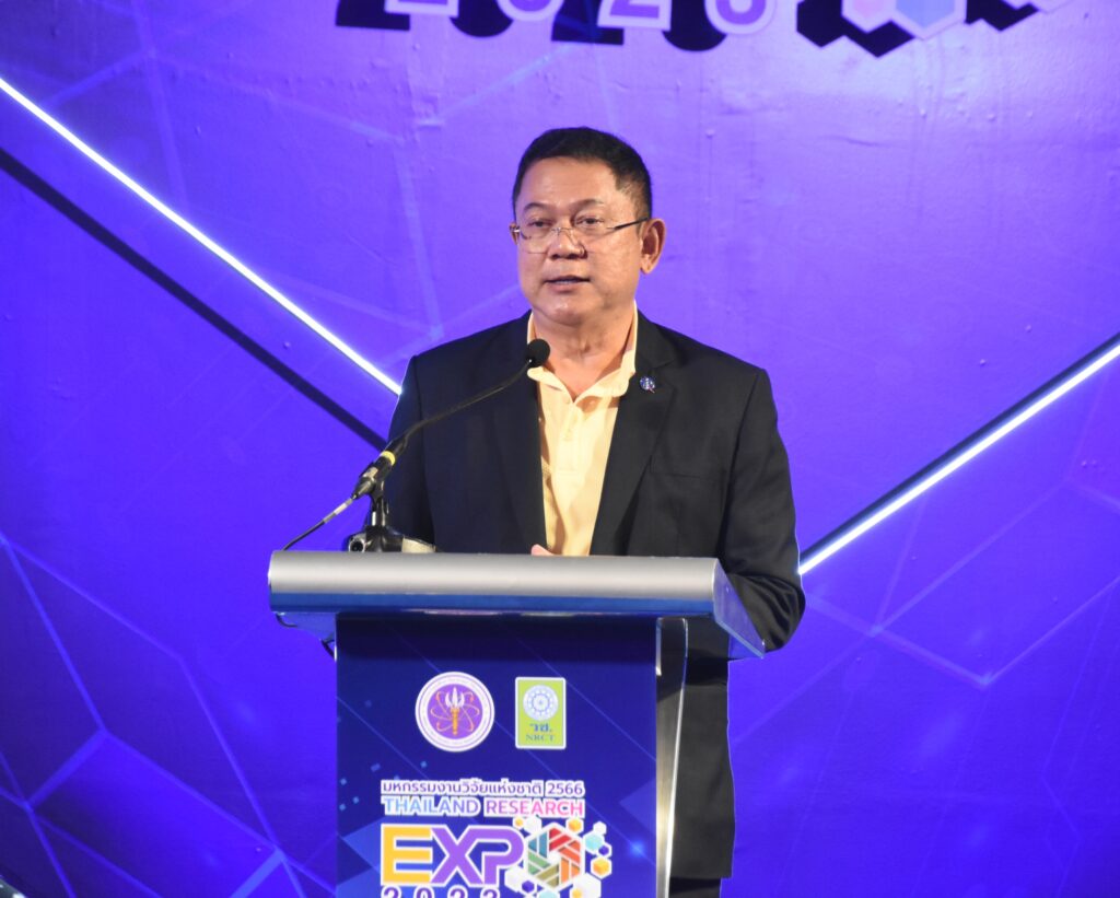 ศ.กิตติคุณ นพ.สุทธิพร จิตต์มิตรภาพ ประธาน (กสว.) กล่าวว่า เมื่อ 10 กว่าปีที่ผ่านมา สภาการอุดมศึกษา ทำแผนงานให้มหาวิทยาลัยเป็นมหาวิทยาลัยวิจัย มีเป้าหมาย 10 แห่ง แต่ด้วยการบริหารแบบไทยๆ งบประมาณ 5,000 ล้านบาท จึงกระจายไป 100 แห่ง ใช้เวลา 3 ปีจะทำอย่างไรให้เป็นมหาวิทยาลัยเข้มแข็ง ซึ่งได้พบว่ามหาวิทยาลัยไปได้ดีแต่ไปไม่ได้สุดทาง จึงเป็นเรื่องที่ท้าทายต่อไป (วช.) ได้จัดสรรงบประมาณ 500 ล้านบาทต่อเนื่อง 3 ปี ให้ลองหาวิธีจัดการใหม่โดยเอาประเด็นปัญหาเป็นตัวตั้ง ซึ่งในที่สุดก็ประสบความสำเร็จในระดับหนึ่ง จึงขอขอบคุณคนทำงานที่ได้ทลายกำแพงระหว่างมหาวิทยาลัย แต่ไม่รู้จะทำได้ขนาดไหน ต้องจับตากันต่อไปว่ากลุ่มเหล่านี้จะเข้มแข็งพอจะไปหาทุนได้ด้วยตนเองตามความสามารถ ไม่ว่าจะเป็นเรื่องของเอไอ ภูมิอากาศ พีเอ็ม 2.5