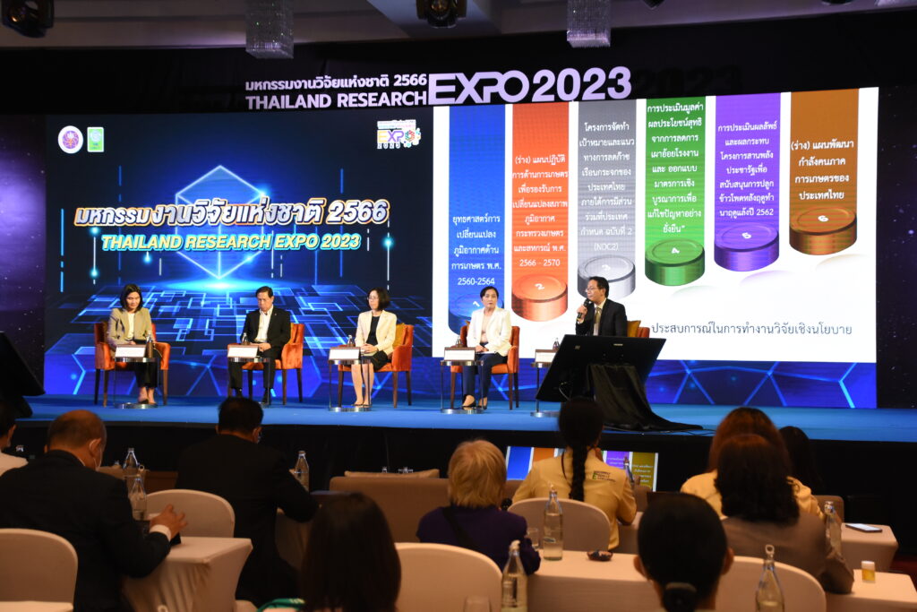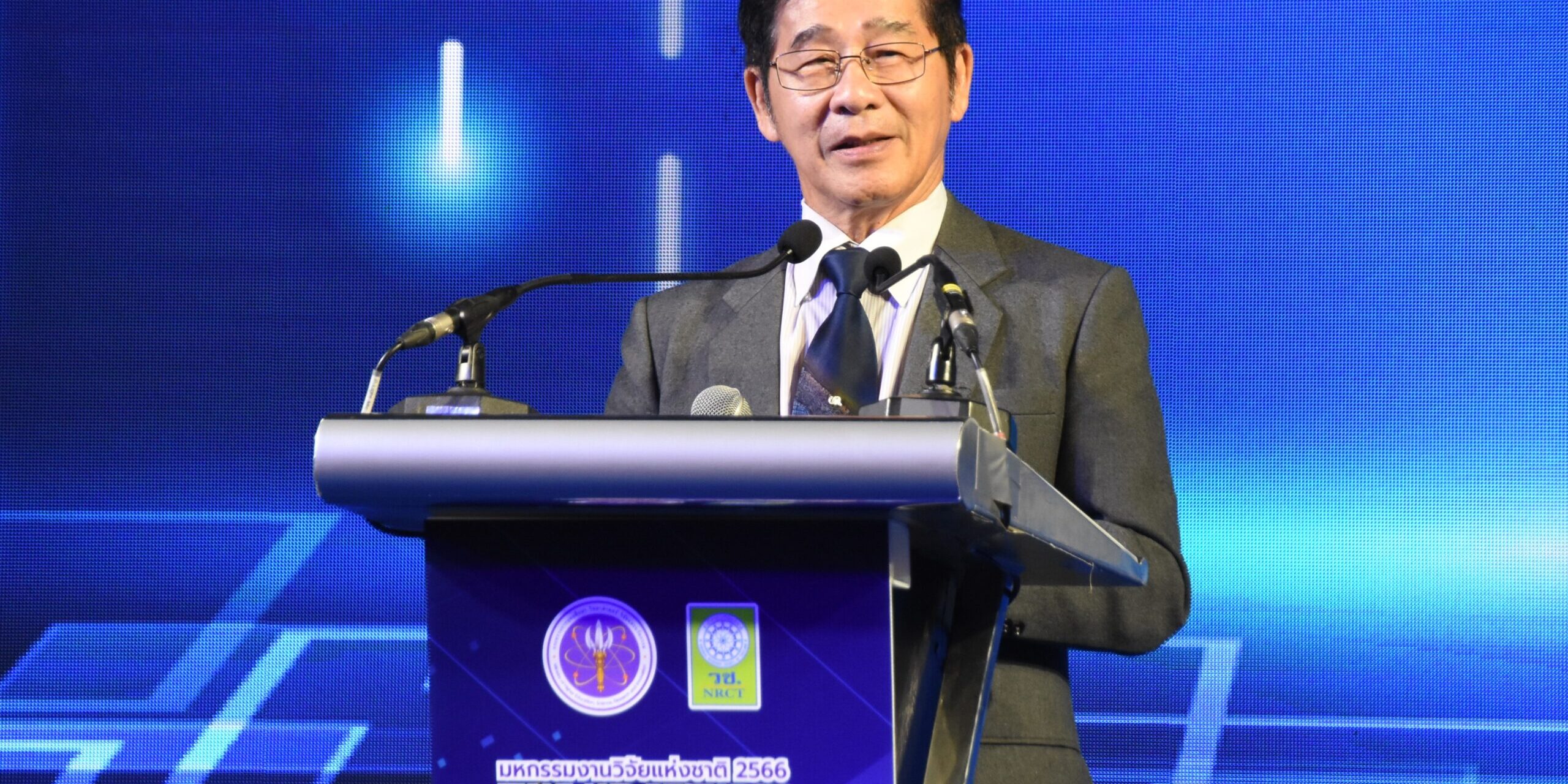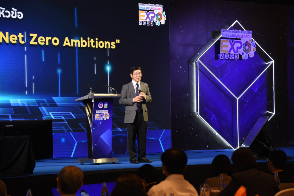 สำนักงานการวิจัยแห่งชาติ (วช.) กระทรวงการอุดมศึกษา วิทยาศาสตร์ วิจัยและนวัตกรรม (อว.) ร่วมกับ เครือข่ายพันธมิตรมหาวิทยาลัยเพื่อการวิจัย หรือ RUN จัดงานปาฐกถาพิเศษหัวข้อ “Roles of Research towards Net Zero Ambitions” โดย ศ.กิตติคุณ นพ.สุทธิพร จิตต์มิตรภาพ ประธานกรรมการส่งเสริมวิทยาศาสตร์วิจัยและนวัตกรรม (กสว.) และ นายสมิทธิพร เศรษฐปราโมทย์ Head of the Corporate Group at Banpu ในงานมหกรรมวิจัยแห่งชาติ 2566 ที่ห้องเวิลด์บอลรูม ชั้น 23 โรงแรมเซ็นทาราแกรนด์ และบางกอกคอนเวนชันเซ็นเตอร์ เซ็นทรัลเวิลด์ เมื่อวันที่ 11 สิงหาคม 2566 โดยมี ดร.วิภารัตน์ ดีอ่อง ผู้อำนวยการสำนักงานการวิจัยแห่งชาติ เป็นประธานเปิดการเสวนาฯ