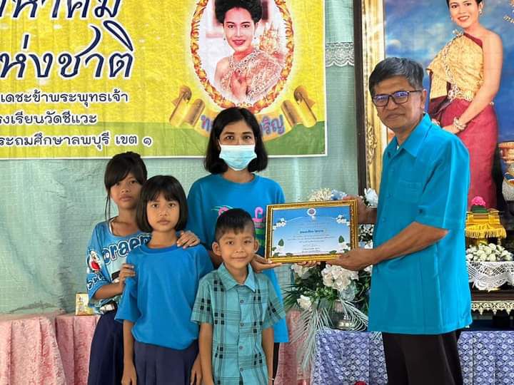 จ่าสิบเอกบรรเจิด สุกุรา ผู้อำนวยการโรงเรียนวัดชีแวะ นำคณะครู นักเรียน