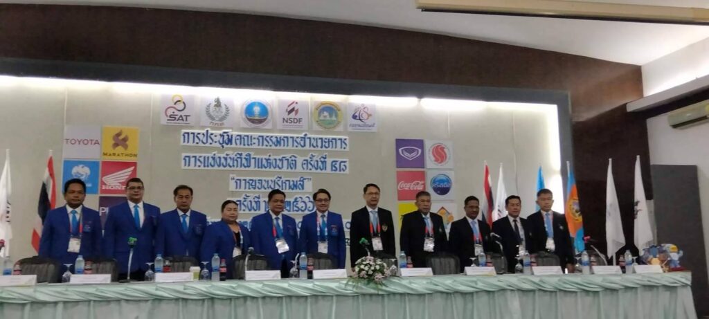 ริเวอร์แคว รีสอร์ท แอนด์ สปา ตำบลแก่งเสี้ยน อำเภอเมืองจังหวัดกาญจนบุรี การประชุมหัวหน้าคณะนักกีฬาร่วมกับคณะกรรมการจัดการแข่งขันฯ Chef De Mission นอกจากนี้คณะกรรมการยังได้เตรียมพร้อมรับมือกรณีสถานการณ์ฉุกเฉินทั้งฝนตกหนัก และอากาศที่ร้อน