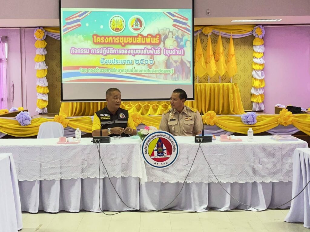 เมื่อวันศุกร์ ที่ 11 ส.ค. 66 เวลา 08.30 น. พ.อ.ดุสิต ประพฤติดีพร้อม รอง ผอ.รมน.จังหวัด ล.บ.(ท) มอบหมายให้ พ.อ. ตันติกร ทิพย์จุฑา หน. กลุ่มงานนโยบายแผน และการข่าวฯ และ พ.อ.หญิง นลินทิพย์ สุวรรณพันธ์ หน.กลุ่มงานกิจการมวลชนฯ พร้อมด้วยกำลังพล กอ.รมน.จังหวัด ล.บ. ดำเนินกิจกรรมโครงการชุมชนสัมพันธ์ ประจำปี 2566 เพื่อสร้างความตระหนักรู้ในสถาบันหลักของชาติ และรับฟังปัญหาด้านความมั่นคงของชุมชน เพื่อสร้างความมั่นคงให้กับชุมชนในจังหวัด ซึ่งเชื่อมโยงกับแผนแม่บทภายใต้ยุทธศาสตร์ชาติประเด็นความมั่นคงตามแผนงานเสริมสร้างความมั่นคงของสถาบันหลักของชาติ ณ อบต.ท่าแค อ.เมือง จ.ลพบุรี
