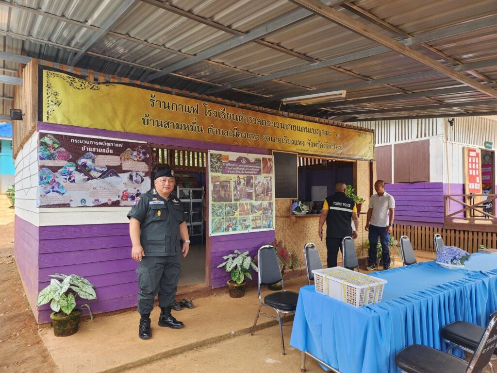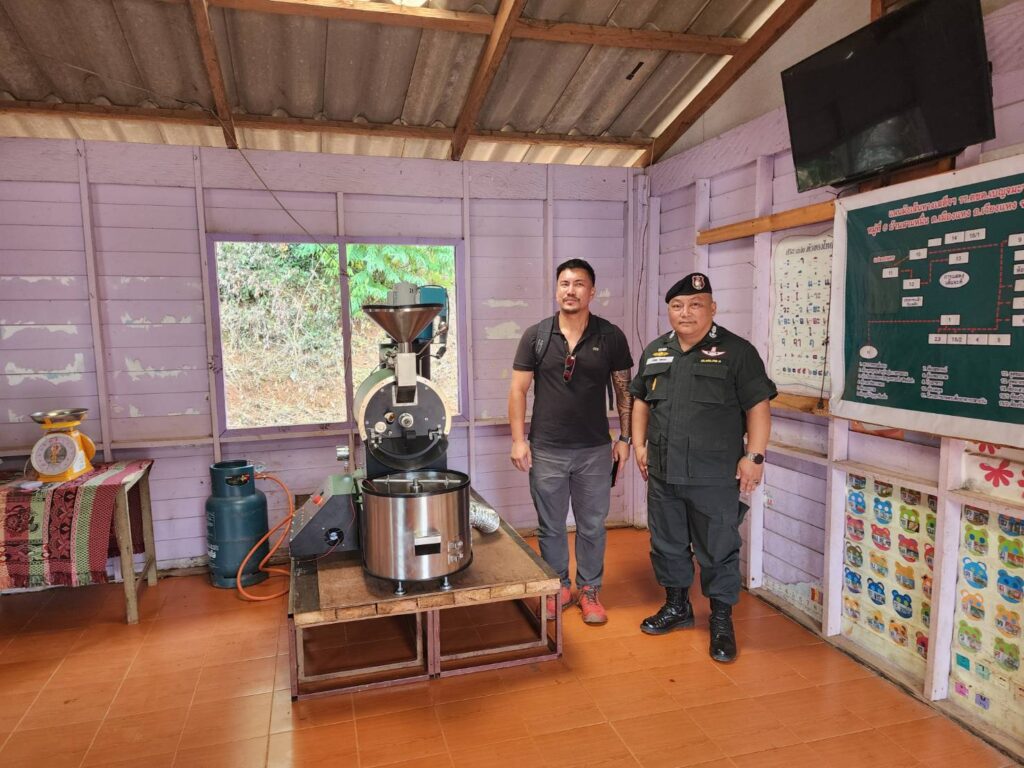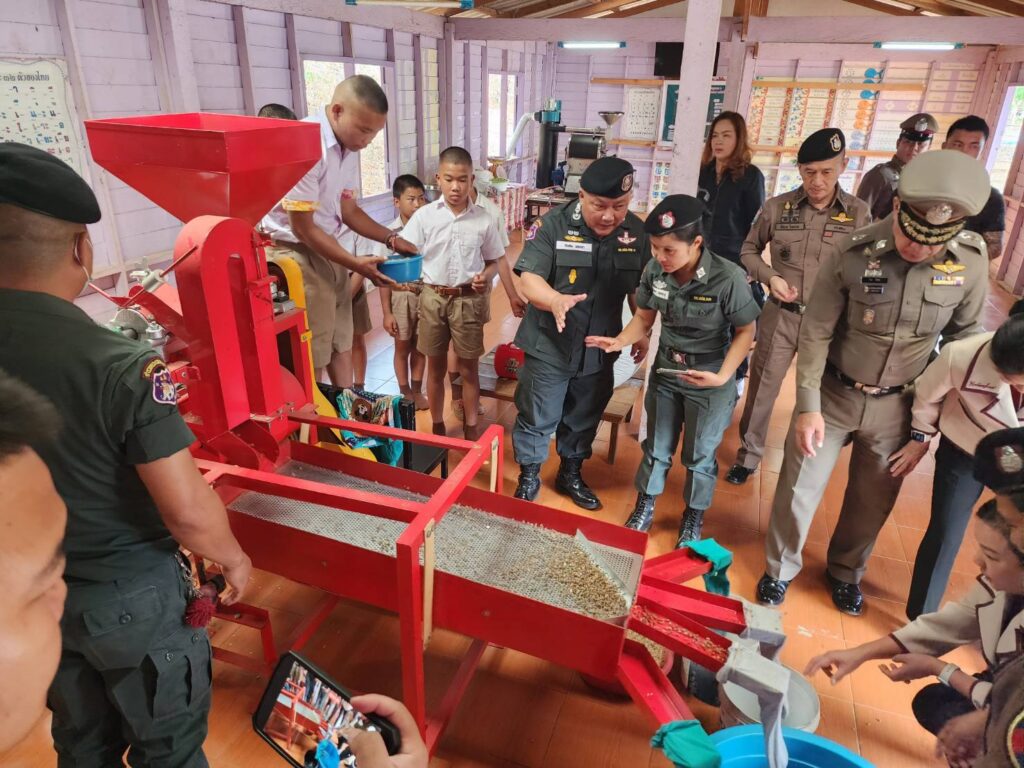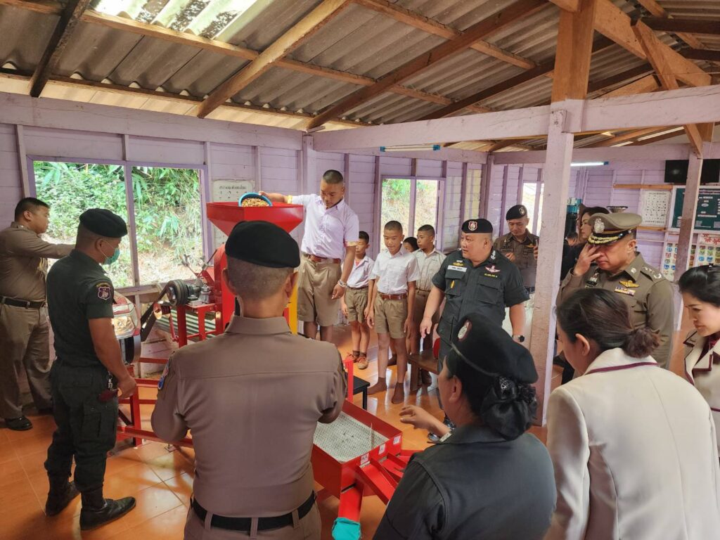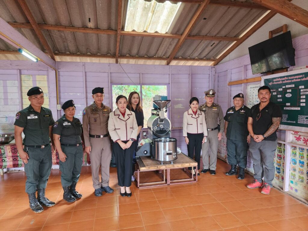คุณ พิยดา ต๊ะวิชัย ประธานชมรมแม่บ้านตำรวจภูธรภาค 5 พร้อมด้วย พล.ต.ท.สุคุณ พรหมายน ผบช.ทท.และ พล.ต.ท.ปิยะ ต๊ะวิชัย ผบช.ภ.5 ในนามสมาคมแม่บ้านตำรวจ มอบเครื่องคั่วกาแฟ และเครื่องคัดแยกเมล็ดกาแฟ ให้กับ รร.ตชด.เบญจมะ 1 อ.เวียงแหง จ.เชียงใหม่