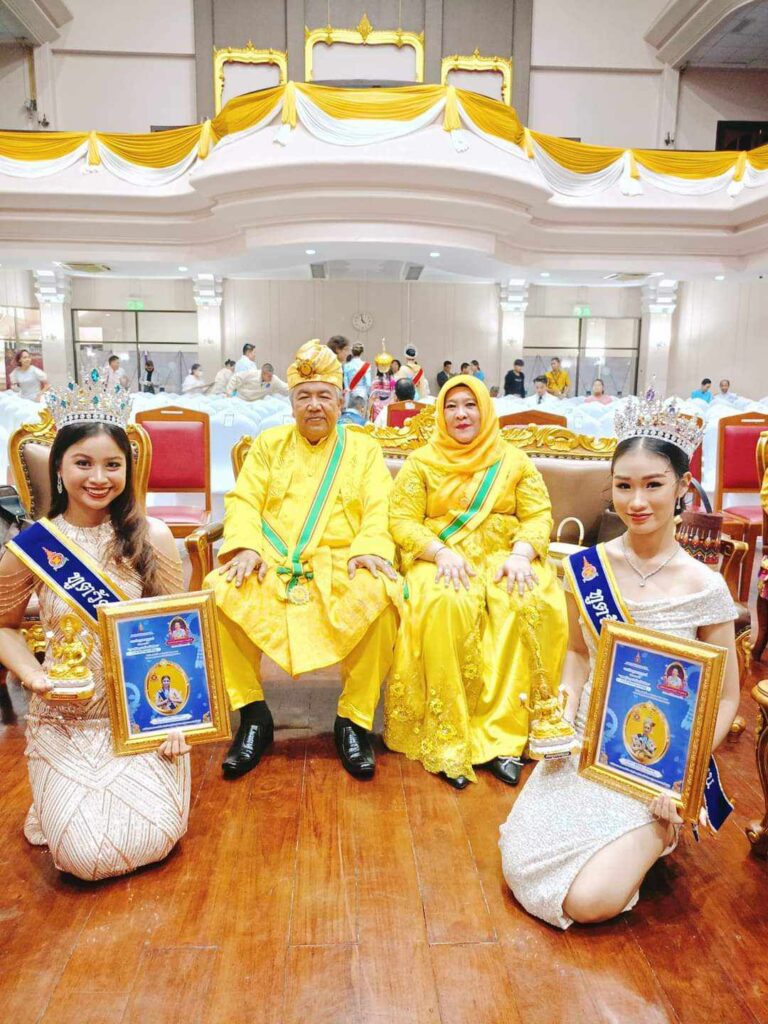รับมงกุฎทูตวัฒนธรรมพร้อมสายสะพายจากสุรตานราชาตวนกูที่4 เมดานสุมาตราอินโดนิเซียและพระราชินีและพระราชโอรส เป็นเกียรติกับวงจะกูล