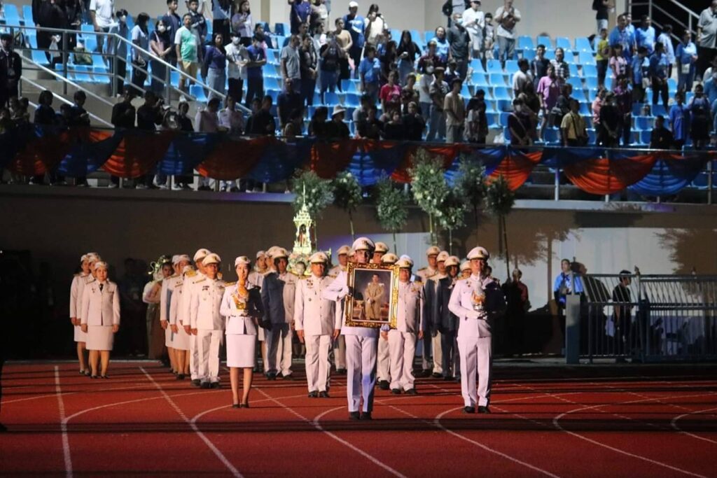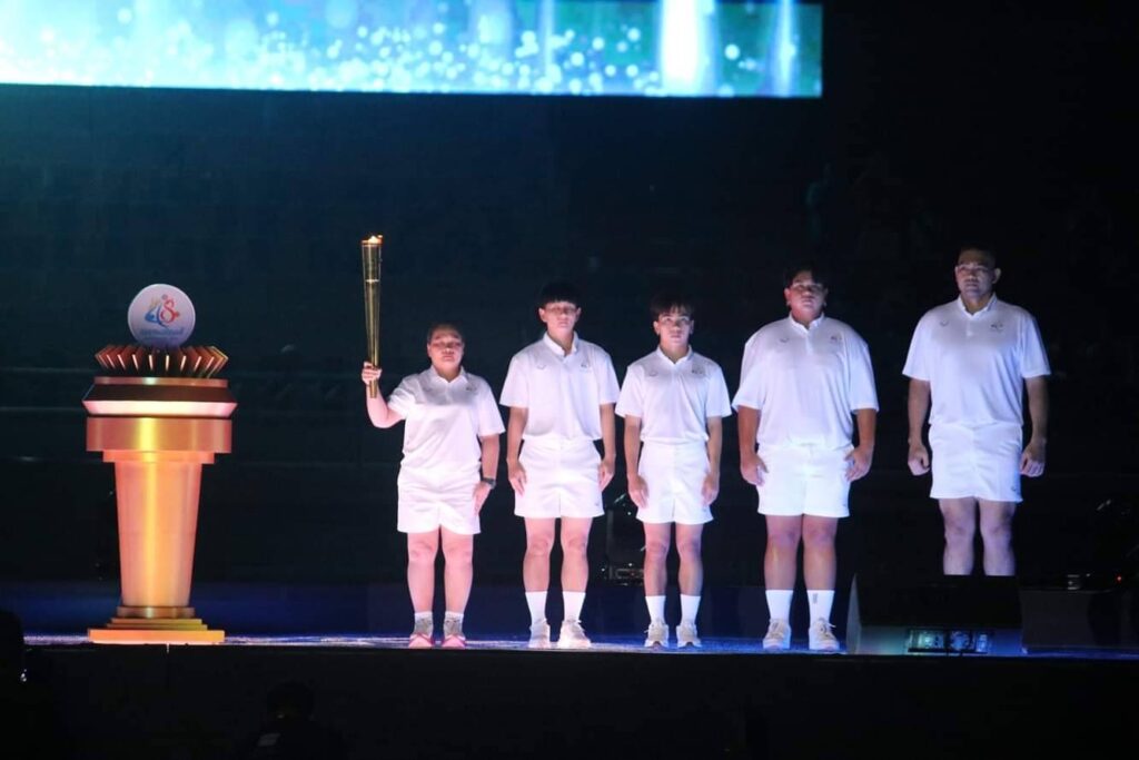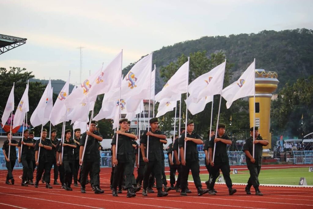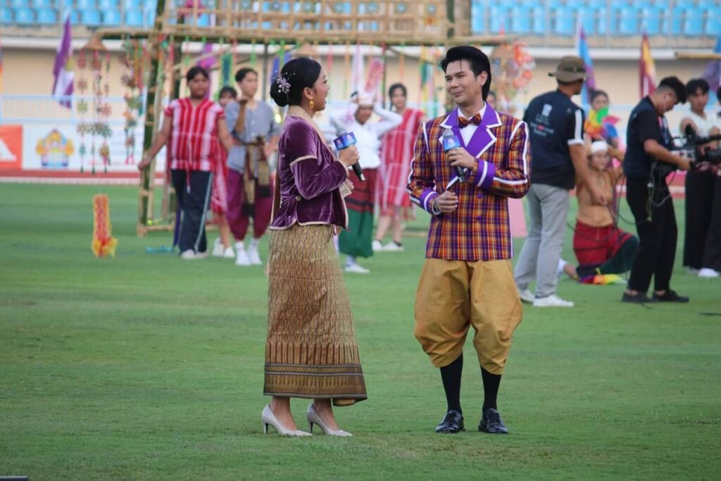 ทั้งนี้ ก่อนพิธีการเปิดอย่างเป็นทางการได้มีการแสดง จากเยาวชนในจังหวัดกาญจนบุรี รวม 1,000 คนจำนวน 5 ชุดและขบวนพาเหรดผู้บริหาร นักกีฬา ผู้ฝึกสอน จากทั้ง 77 จังหวัด เข้ามายังสนามเพื่อร่วมในพิธีเปิดกีฬาอย่างเป็นทางการและมีพิธีอัญเชิญไฟพระฤกษ์จากนักกีฬาทีมชาติที่สร้างผลงานดีเด่นให้ประเทศไทย เข้าสู่สนาม โดย นางสาวปานวาศ กิมสร้าง นายชนกพล เจียมสุขใจ พันตำรวจโท วันสว่าง สวัสดี และจุดคบเพลิงโดยนาวาโทหญิงอารีย์ วิรัฐถาวร ซึ่งพิธีเปิดกีฬาในครั้งนี้ได้จัดขึ้นอย่างยิ่งใหญ่อลังการ