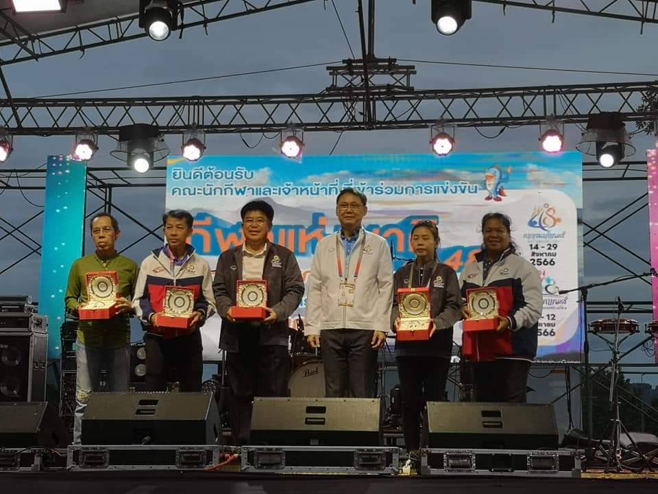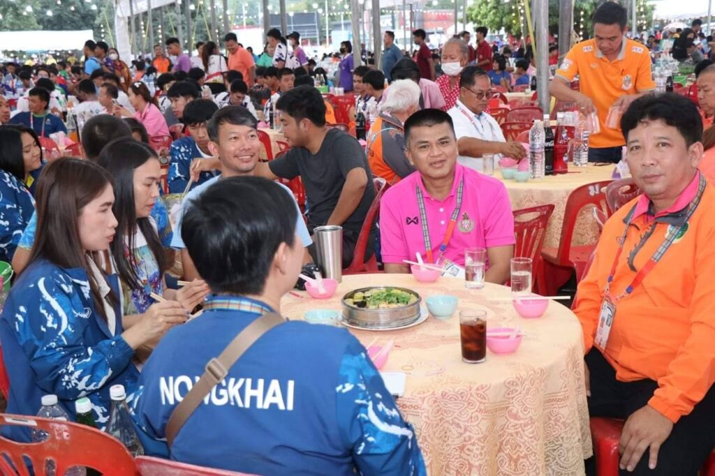 วันนี้ (15 ก.ย. 66) ที่ลานข้างสนามกลีบบัว อำเภอเมือง จังหวัดกาญจนบุรี ร้อยโททศพล ไชยโกมินท์ ผู้ว่าราชการจังหวัดกาญจนบุรี เป็นประธานงานเลี้ยงต้อนรับนักกีฬาและเจ้าหน้าที่ ที่เข้าร่วมการแข่งขันกีฬากีฬาแห่งชาติ ครั้งที่ 48 “กาญจนบุรีเกมส์” โดยมีคณะผู้ฝึกสอนและนักกีฬาจากทั่วประเทศเข้าร่วม