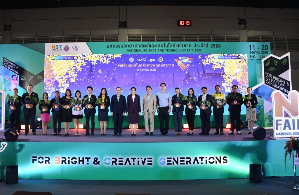 สำนักงานพัฒนาวิทยาศาสตร์และเทคโนโลยีแห่งชาติ (สวทช.) โดย ดร.จุฬารัตน์ ตันประเสริฐ รองผู้อำนวยการ สวทช.ร่วมกับ องค์การสำรวจอวกาศญี่ปุ่น หรือ แจ็กซา (Japan Aerospace Exploration Agency : JAXA) โดยมีนายทาเคฮิโระ นากามูระ ผู้อำนวยการองค์การสำรวจอวกาศญี่ปุ่น สำนักงานกรุงเทพฯ และมหาวิทยาลัยมหิดล ร่วมส่งมอบต้นกล้าราชพฤกษ์ที่ปลูกโดยใช้เมล็ดที่ผ่านการท่องอวกาศนาน 7 เดือน ให้แก่สถาบันการศึกษาและหน่วยงานภาครัฐรวม 22 แห่งทั่วประเทศนำไปปลูก เพื่อต่อยอดสู่การเรียนรู้วิทยาศาสตร์จากการศึกษาเปรียบเทียบการเติบโตระหว่างต้นราชพฤกษ์อวกาศที่ปลูกด้วยเมล็ดจากอวกาศกับต้นราชพฤกษ์ที่ปลูกด้วยเมล็ดปกติ ภายในงานมหกรรมวิทยาศาสตร์และเทคโนโลยีแห่งชาติ ประจำปี 2566