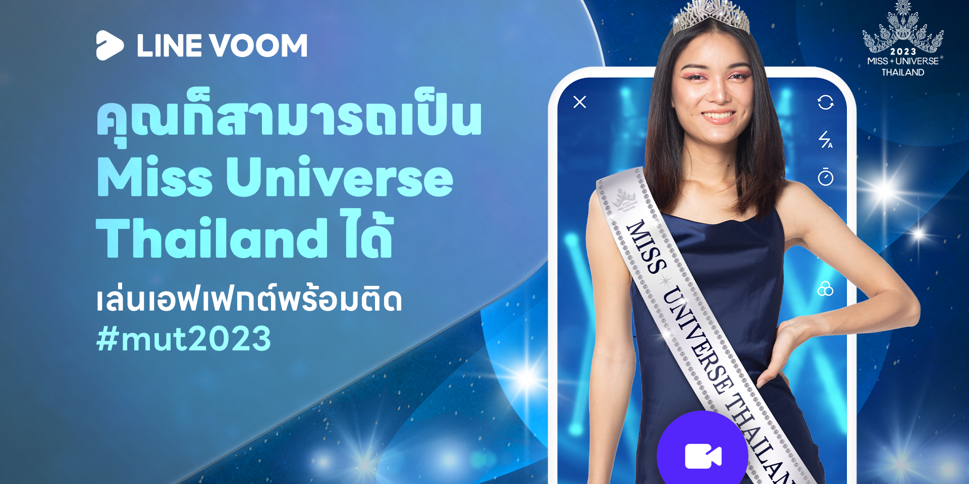 เอนจอยสุดๆ กับฟิลเตอร์พิเศษจาก MUT 2023 ใน LINE VOOM มาครบทั้งมงกุฎจังหวัด สายสะพาย และเมคอัพฉ่ำๆ สไตล์สาวงาม ซึ่งมงกุฎในฟิลเตอร์นี้เป็นมงกุฏระดับจังหวัด ดีไซน์มงกุฎด้วยแนวคิด “The Beginning of Across the Universe” สัญลักษณ์ “ดวงดาวแปดแฉก” แทนความหมายของการเริ่มต้นเดินทางสู่ความฝัน นำทางเดินไปสู่ความสำเร็จที่อยู่ไม่ไกลเกินเอื้อม เปิดให้แฟนๆ ร่วมซ้อมเดินทางสู่จักรวาลไปด้วยกัน ในกิจกรรม Hashtag Challenge #MUT2023 โดยเข้าเมนู “LINE VOOM” กดไอคอนรูปบวกหรือรูปกล้องด้านบนขวา เลือกไปที่ไอคอนเอฟเฟคต์ที่ด้านซ้ายล่างในแถบ Special และใช้ฟิลเตอร์พิเศษ “Miss Universe” โชว์ความคิดสร้างสรรค์พร้อมติด #MUT2023 ก็ไม่พลาดการเป็นส่วนหนึ่งของการประกวดที่ยิ่งใหญ่ครั้งนี้ โดยสามารถร่วมชมและแชร์คอนเทนต์ #MUT2023 ได้ที่ https://lin.ee/0SPHyo7/lntl/PR