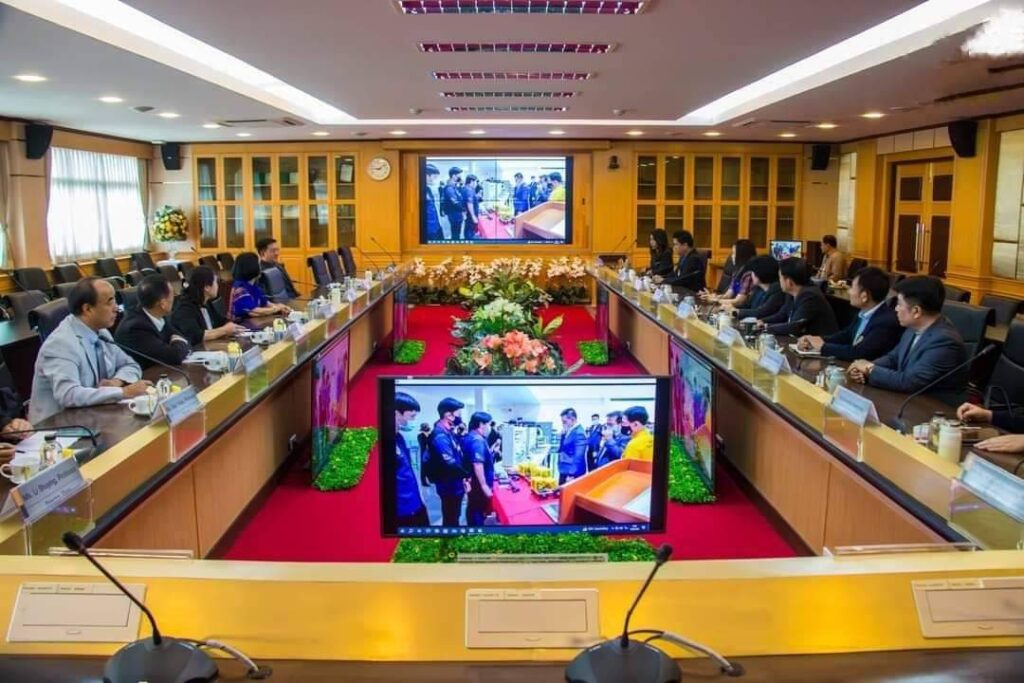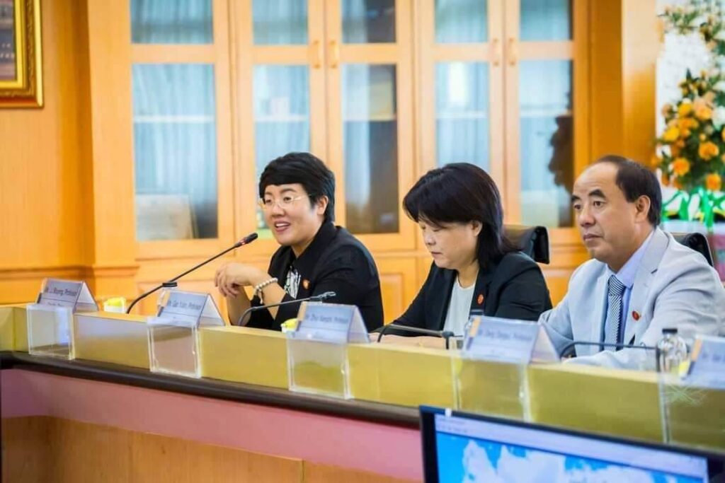 วันที่ 16 สิงหาคม 2566 ผศ.ดร.พจนีย์ สุขชาวนา อธิการบดี พร้อมด้วยคณะผู้บริหาร มหาวิทยาลัยราชภัฏกาญจนบุรี กล่าวต้อนรับและหารือความร่วมมือทางวิชาการกับคณะผู้บริหารจากมหาวิทยาลัย Huaibei Normal University ประเทศสาธารณรัฐประชาชนจีน ในโครงการหารือความร่วมมือทางวิชาการระหว่างมหาวิทยาลัยราชภัฏกาญจนบุรีกับมหาวิทยาลัยครุศาสตร์ฮวยเบ่ย มณฑลอันฮุย สาธารณรัฐประชาชนจีน ระหว่างวันที่ 15 -17 สิงหาคม 2566 พร้อมเข้าพบผู้บริหารคณะมนุษยศาสตร์และสังคมศาสตร์ อาจารย์สาขาวิชาภาษาจีนและพูดคุยแลกเปลี่ยนกับนักศึกษาสาขาวิซาภาษาจีนที่ได้รับ ทุนทั้งหมด 20 คน เพื่อให้การดำเนินการจัดทำบันทึกความร่วมมือทางวิชาการ (MOU) กับมหาวิทยาลัยครุศาสตร์ฮวยเป้ย (Huaibei Normal University) เมืองฮวายเปย มณฑลอันฮุย สาธารณรัฐประชาชนจีน เรื่อง การจัดส่งนักศึกษาสาขาวิชาภาษาจีน ไปศึกษาภาษาและวัฒนธรรมจีน ณ มหาวิทยาลัยดังกล่าวเป็นระยะเวลาหนึ่งปีการศึกษาเป็นไปด้วยความเรียบร้อย ณ ห้องประชุมสภา อาคารบริการวิชาการและบัณฑิตศึกษามหาวิทยาลัยราชภัฏกาญจนบุรี
