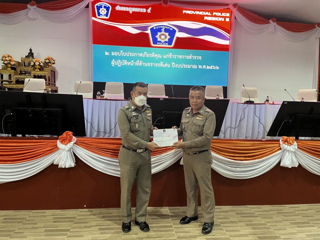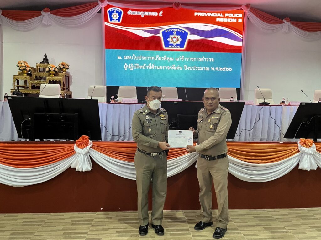 มอบใบประกาศเกียรติคุณแก่ผู้ปฏิบัติหน้าที่ด้านจราจรดีเด่น ปีงบประมาณ พ.ศ.2566 ได้แก่