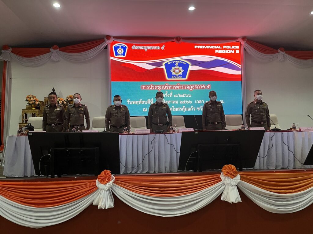 วันที่ 17 ส.ค.66 เวลา 13.30-16.00 น. พล.ต.ท.ปิยะ ต๊ะวิชัย ผบช.ภ.5 เป็นประธานการประชุมบริหาร ภ.5 ครั้งที่ 9/2566 โดยมี พล.ต.ท.เฉลิมพล จินตรัตน์ ผทค.พิเศษฯ ,พล.ต.ต.กฤตธาพล ยี่สาคร รอง ผบช.ภ.5 ,พล.ต.ต.พฤทธิพงษ์ ประยูรศิริ รอง ผบช.ภ.5 , พล.ต.ต.พิเชษฐ จีระนันตสิน รอง ผบช.ภ.5 ,พล.ต.ต.วีรชน บุญทวี รอง ผบช.ภ.5 พร้อมด้วย ผบก., หน.สภ.ในสังกัด ภ.5 และ หัวหน้าหน่วยงานในสังกัด ตร. ที่ปฏิบัติงานในพื้นที่ ภ.5 รวม 13 หน่วย ร่วมประชุม