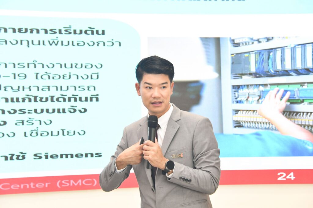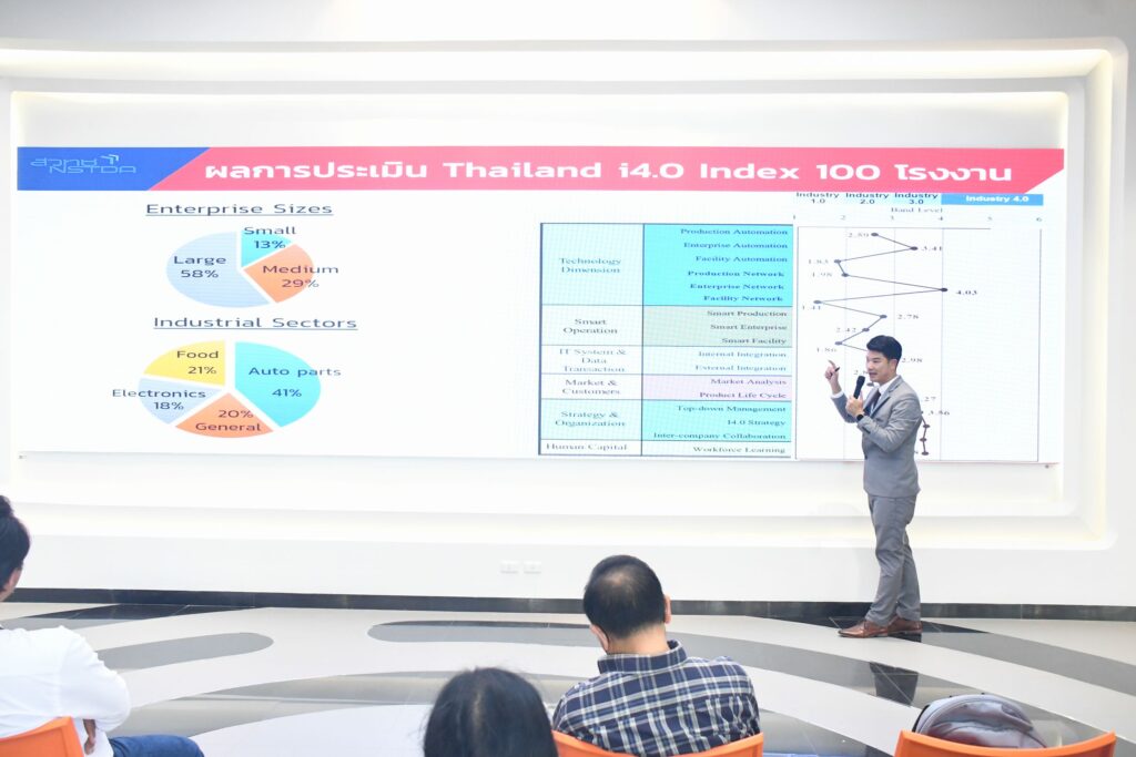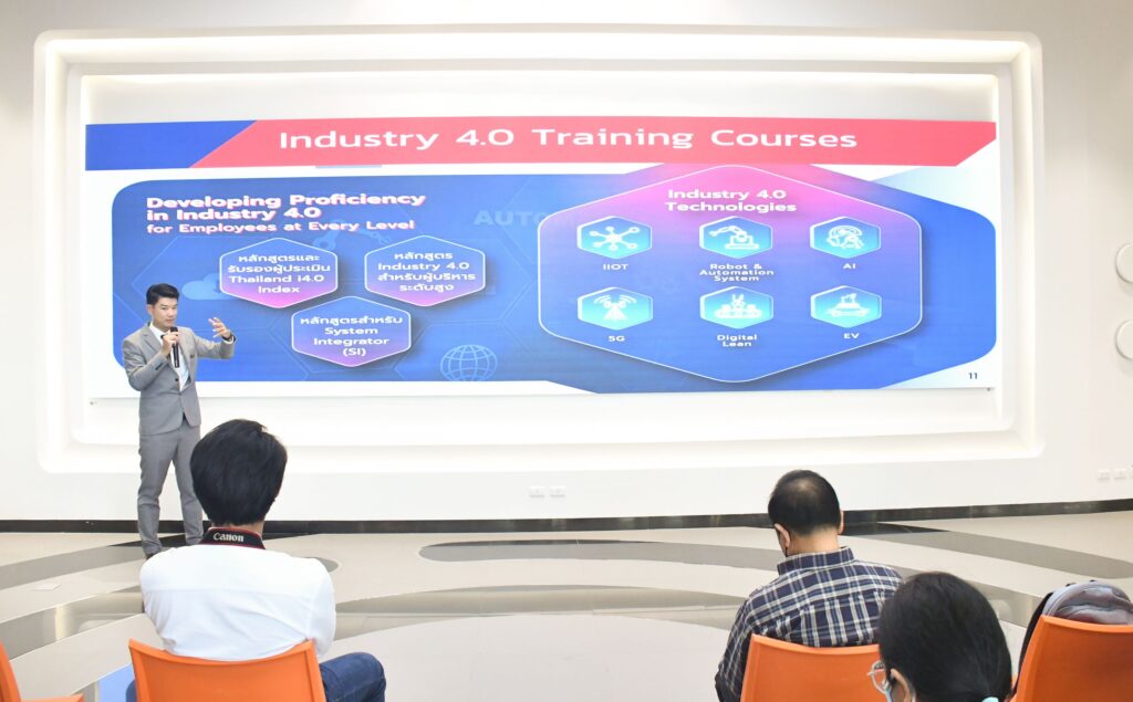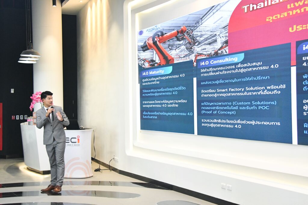 ดร.รวีภัทร์ ผุดผ่อง ผู้อำนวยการฝ่ายความร่วมมืออุตสาหกรรมสมัยใหม่ EECi (สวทช.) กล่าวว่า ปัจจุบันทั่วโลกต่างกำลังตื่นตัวต่อการปฏิวัติสู่อุตสาหกรรม 4.0 (Industry 4.0) ที่มีการนำเทคโนโลยีดิจิทัลและเทคโนโลยีสมัยใหม่เข้ามาประยุกต์ใช้ในสายการผลิตเพื่อยกระดับสินค้า เพิ่มขีดความสามารถในการแข่งขันของประเทศ ขณะที่อุตสาหกรรมส่วนใหญ่ของไทยยังอยู่ที่ระดับ 2–3 เท่านั้น ซึ่งหากไม่สามารถปรับตัวได้ทันต่อการเปลี่ยนแปลงอย่างรวดเร็ว อาจทำให้สูญเสียความสามารถในการแข่งขัน ส่งผลกระทบต่อภาพรวมของเศรษฐกิจ ดังนั้นการยกระดับภาคการผลิตสู่อุตสาหกรรม 4.0 จึงเป็นโจทย์ใหญ่ที่เป็นความท้าทายต่อภาคอุตสาหกรรม ภาคธุรกิจ ภาคการขนส่งและโลจิสติกส์ ภาคแรงงาน ตลอดจนผู้ประกอบการทั้งขนาดเล็กและขนาดใหญ่ อีกทั้งยังสอดรับกับเป้าหมายสำคัญของประเทศและสอดคล้องกับการพัฒนาตามแนวทาง Thailand 4.0