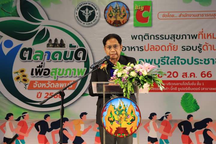 สำนักงานสาธารณสุขจังหวัดลพบุรี จัดกิจกรรมตลาดนัดเพื่อสุขภาพจังหวัดลพบุรีภายใต้โครงการส่งเสริมการตลาด การบริโภคอาหารปลอดภัย เพื่อพัฒนาเครือข่าย การสื่อสารความรอบรู้ ด้านสุขภาพ ตลอดจนประชาชนกลุ่มเป้าหมาย มีทักษะความรอบรู้ด้านสุขภาพนำไปสู่การพัฒนาพฤติกรรมสุขภาพและเพิ่มช่องทาง ในการจำหน่ายสินค้าเพื่อสุขภาพ ผู้ประกอบการสินค้าเพื่อสุขภาพ มีรายได้เพิ่มขึ้น