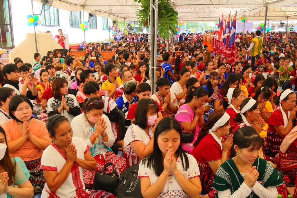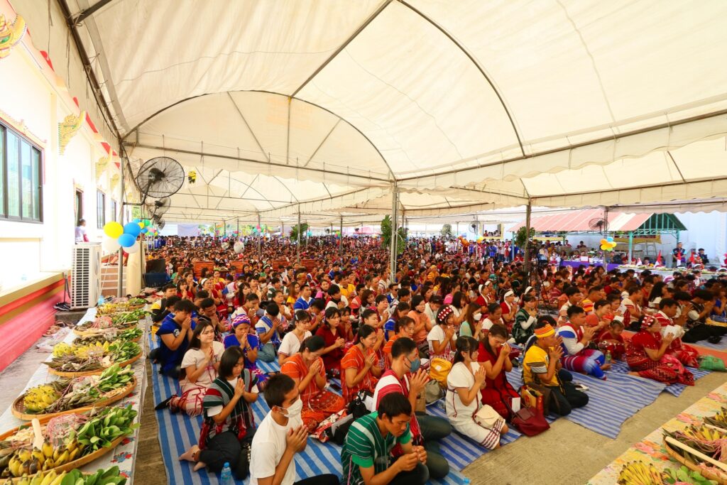 วันที่ 20 สิงหาคม 2566 ที่วัดประยูรธรรมาราม ต.คูคต อ.ลำลูกกา จ.ปทุมธานี ชาวกะเหรี่ยงในชุดพื้นเมืองกว่าพันคน เข้าร่วมพิธีผูกข้อมือประจำปี 2566 โดยมีชาวกะเหรี่ยงส่วนมากอยู่ในวัยหนุ่มสาวที่มาทำงานและเรียนหนังสือในกรุงเทพมหานครและพื้นที่ข้างเคียงเข้ามาร่วมงาน
