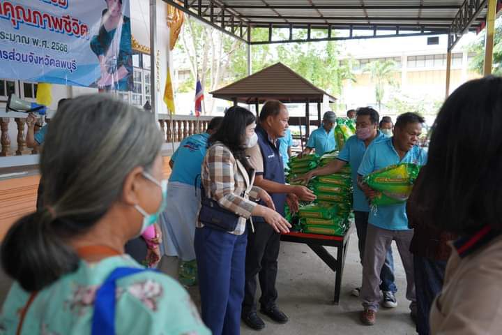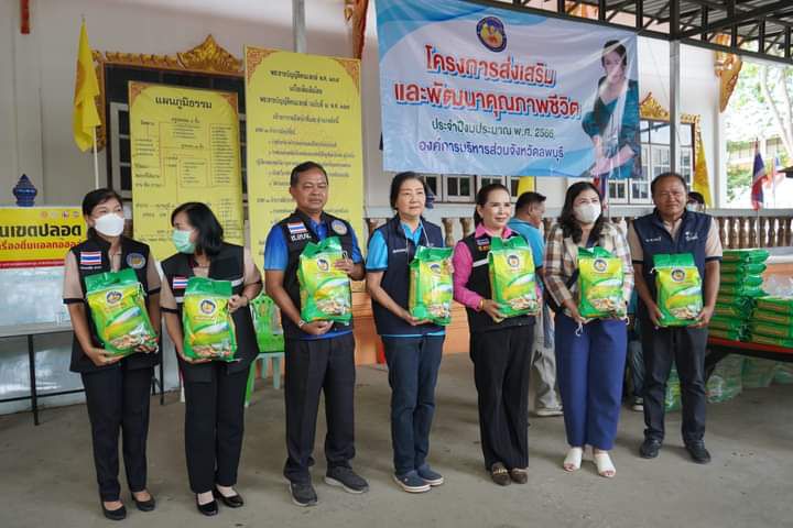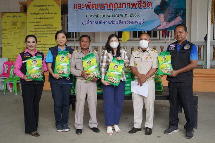 วันที่ 21 สิงหาคม 2566 เวลา 10.00 น. ณ วัดท่าดินดำ อำเภอชัยบาดาล จังหวัดลพบุรี นางอรพิน จิระพันธุ์วาณิช นายกองค์การบริหารส่วนจังหวัดลพบุรี ในฐานะคณะกรรมการบริหารศูนย์อำนวยการขจัดความยากจนและพัฒนาคนทุกช่วงวัยอย่างยั่งยืน ตามหลักปรัชญาเศรษฐกิจพอเพียงจังหวัด (คจพ.จ) ลงพื้นที่มอบเครื่องบริโภค (ข้าวสาร) ช่วยเหลือประชาชนที่มีรายได้น้อยในพื้นที่จังหวัดลพบุรี ตามโครงการส่งเสริมและพัฒนาคุณภาพชีวิตขององค์การบริหารส่วนจังหวัดลพบุรี เพื่อเป็นการส่งเสริมพัฒนาคุณภาพชีวิตและบรรเทาความเดือนร้อนให้แก่ประชาชนในพื้นที่อำเภอชัยบาดาล ทั้งนี้โครงการดังกล่าวจะดำเนินการทั้ง 11 อำเภอในจังหวัดลพบุรี ระหว่างวันที่ 21 สิงหาคม พ.ศ. 2566 ถึงวันที่ 6 กันยายน พ.ศ. 2566