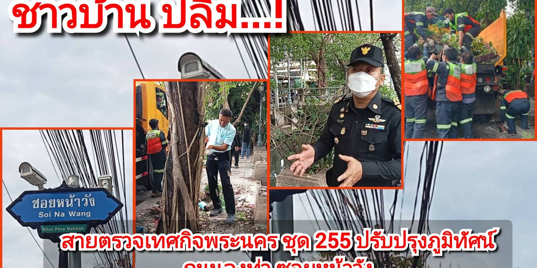 วันนี้ (22ส.ค.66) เวลา เวลา 09:00 น. นายสัมฤทธิ์ สุมาลี ผู้อำนวยการเขตพระนคร นายกฤษดา เพ็ชรสีสัง ผู้ช่วยผู้อำนวยการเขตพระนคร มอบหมาย นายณัฐชนนท์ ชญาน์ธนวิชญ์ หัวหน้าฝ่ายเทศกิจ ร.อ.ทวีศักดิ์ พรหมสุวิชา นคร 52 นายศุภกฤต สูนโยธา เจ้าพนักงานงานเทศกิจชำนาญการ นายนิติ ยอดแคร่ว หัวหน้าชุดสายตรวจ จัดกำลัง เจ้าหน้าที่เทศกิจสายตรวจชุด255 ว.4 ร่วม จนท.ฝ่ายรักษาฯ ลงพื้นที่ ปรับปรุงภูมิทัศน์ บริเวณถนนลงท่า ซอยหน้าวัง เขตพระนคร กทม.