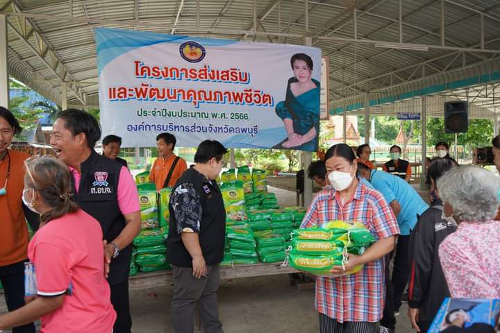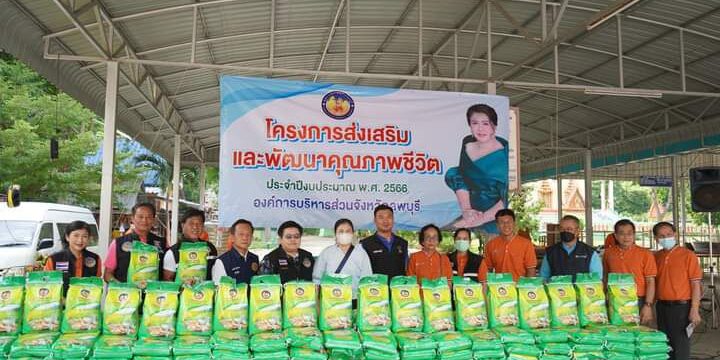 วันที่ 22 สิงหาคม 2566 เวลา 10.00 น. ณ วัดไตรคีรีวัน (เขาภูตอง) จังหวัดลพบุรี นางอรพิน จิระพันธุ์วาณิช นายกองค์การบริหารส่วนจังหวัดลพบุรี ในฐานะคณะกรรมการบริหารศูนย์อำนวยการขจัดความยากจนและพัฒนาคนทุกช่วงวัยอย่างยั่งยืน ตามหลักปรัชญาเศรษฐกิจพอเพียงจังหวัด (คจพ.จ) ลงพื้นที่มอบเครื่องบริโภค (ข้าวสาร) ช่วยเหลือประชาชนที่มีรายได้น้อยในพื้นที่จังหวัดลพบุรี ตามโครงการส่งเสริมและพัฒนาคุณภาพชีวิตขององค์การบริหารส่วนจังหวัดลพบุรี เพื่อเป็นการส่งเสริมพัฒนาคุณภาพชีวิตและบรรเทาความเดือนร้อนให้แก่ประชาชนในพื้นที่อำเภอชัยบาดาล ทั้งนี้โครงการดังกล่าวจะดำเนินการทั้ง 11 อำเภอในจังหวัดลพบุรี ระหว่างวันที่ 21 สิงหาคม พ.ศ. 2566 ถึงวันที่ 6 กันยายน พ.ศ. 2566
