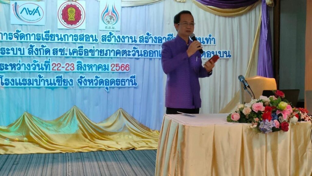 วันที่ 22 สิงหาคม 2566 ว่าที่เรือตรี ชูชีพ อรุณเหลือง รองเลขาธิการคณะกรรมการส่งเสริมการศึกษาเอกชน (รองเลขาธิการ กช.) เป็นประธานในการลงพื้นที่ เพื่อเยี่ยมชมการจัดการเรียนการสอนของโรงเรียนเอกชนนอกระบบ กลุ่มภาคอีสานตอนบน โดยมีนางสาวสุมิตรา ทองแสง ผู้เชี่ยวชาญเฉพาะด้านส่งเสริมมาตรฐานการศึกษา นายชาญวิทย์ ทับสุพรรณ คณะกรรมการศึกษาธิการจังหวัดอุดรธานี (กศ.จ.) นายสุวัฒน์ชัย แสนราช ศึกษาธิการจังหวัดอุดรธานี นายชัยณรงค์ กัจฉปานันท์ ผู้จัดการกองทุนเงินให้กู้ยืมเพื่อการศึกษา นายพรชัย พิศาลสิษฐ์กุล นายกสมาคมการศึกษาเอกชนนอกระบบ (ประเทศไทย) พร้อมด้วย ข้าราชการ และบุคลากร ในพื้นที่ที่เกี่ยวข้อง เข้าร่วมการประชุม ณ โรงแรมบ้านเชียง จังหวัดอุดรธานี