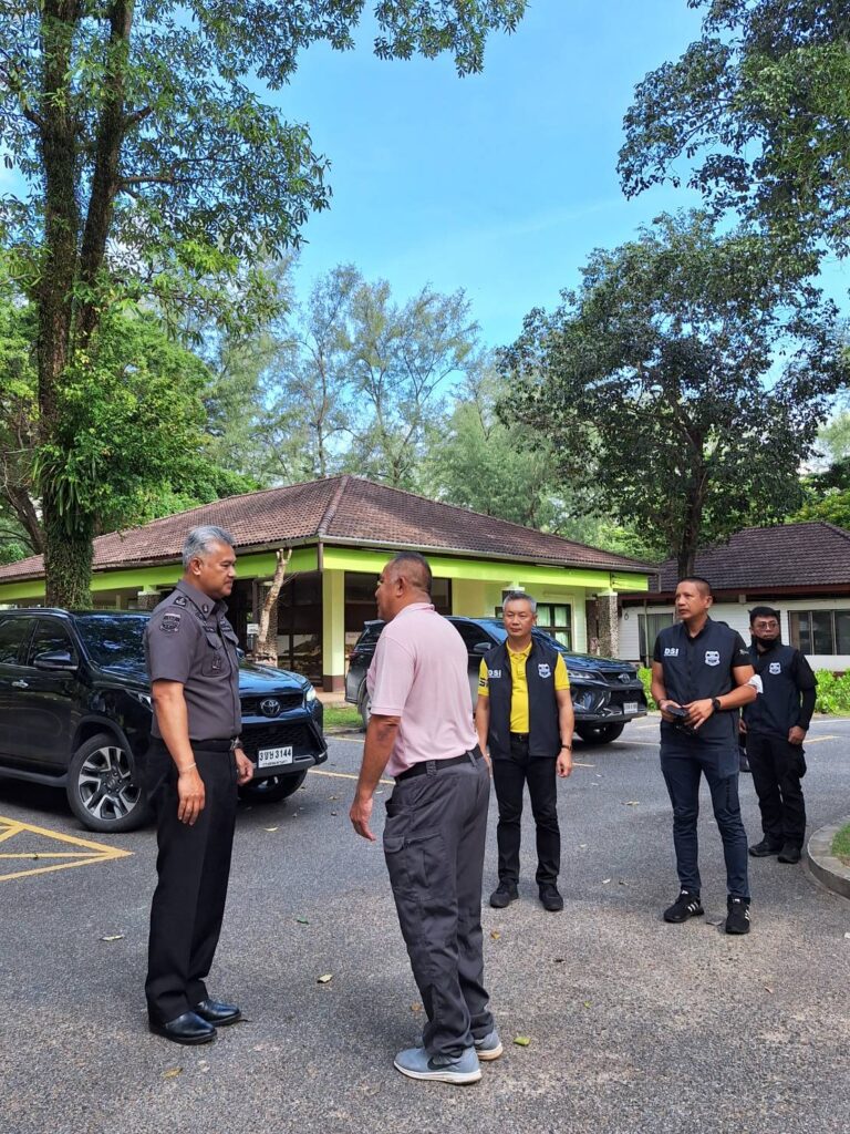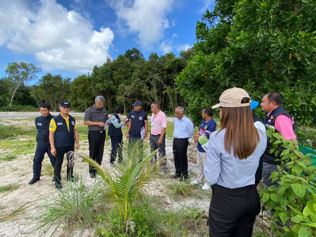 วันอังคารที่ 22 สิงหาคม 2566 : ร้อยตำรวจเอก ปิยะ รักสกุล รองอธิบดีกรมสอบสวนคดีพิเศษ พันตำรวจโท อมร หงษ์ศรีทอง ผู้อำนวยการกองคดีทรัพยากรธรรมชาติและสิ่งแวดล้อม พร้อมคณะพนักงานสอบสวนคดีพิเศษ เดินทางลงพื้นที่จังหวัดภูเก็ต โดยได้ร่วมกับเจ้าหน้าที่อุทยานแห่งชาติสิรินาถ เจ้าหน้าที่อำเภอถลาง และผู้ปกครองท้องที่ เข้าตรวจสอบพื้นที่เกิดเหตุภายในเขตอุทยานแห่งชาติสิรินาถ ตำบลสาคู อำเภอถลาง จังหวัดภูเก็ต โดยได้ใช้เครื่องมืออากาศยานไร้คนขับ (โดรน) ขึ้นบินตรวจสอบสภาพพื้นที่และจัดทำแผนที่เกิดเหตุ นอกจากนี้ ได้ทำการสอบปากคำเจ้าหน้าที่อุทยานแห่งชาติสิรินาถ และรวบรวมพยานหลักฐานอื่นๆ ที่เกี่ยวข้องไว้ประกอบการสอบสวน